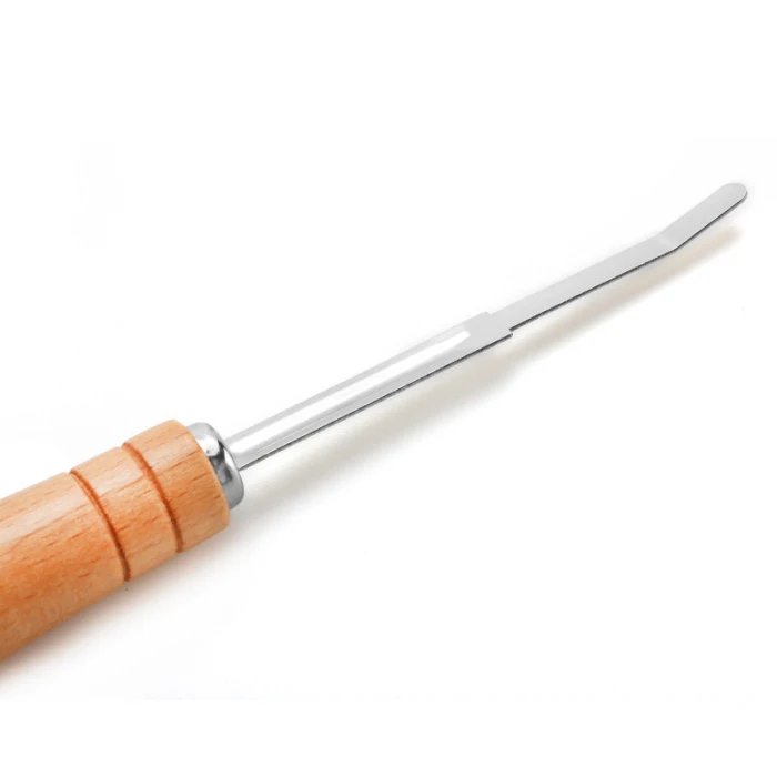 Хорошо работает и прост в использовании:Ручка имеет такую же форму, что и удобно лежит в руке, чтобы полностью контролировать работу с вырезами, благодаря чему ваши искорки выглядят абсолютно красиво. Помогает сделать ровные срезы на верхней части каравая и намного проще в использовании, чем оголенные лезвия на деревянной мешалке для кофе