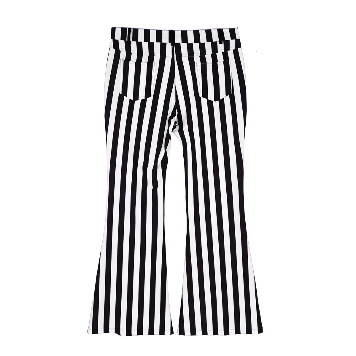 Средний подъем и клеш колокол, рисунок в полоску, очень гладкое ощущение.