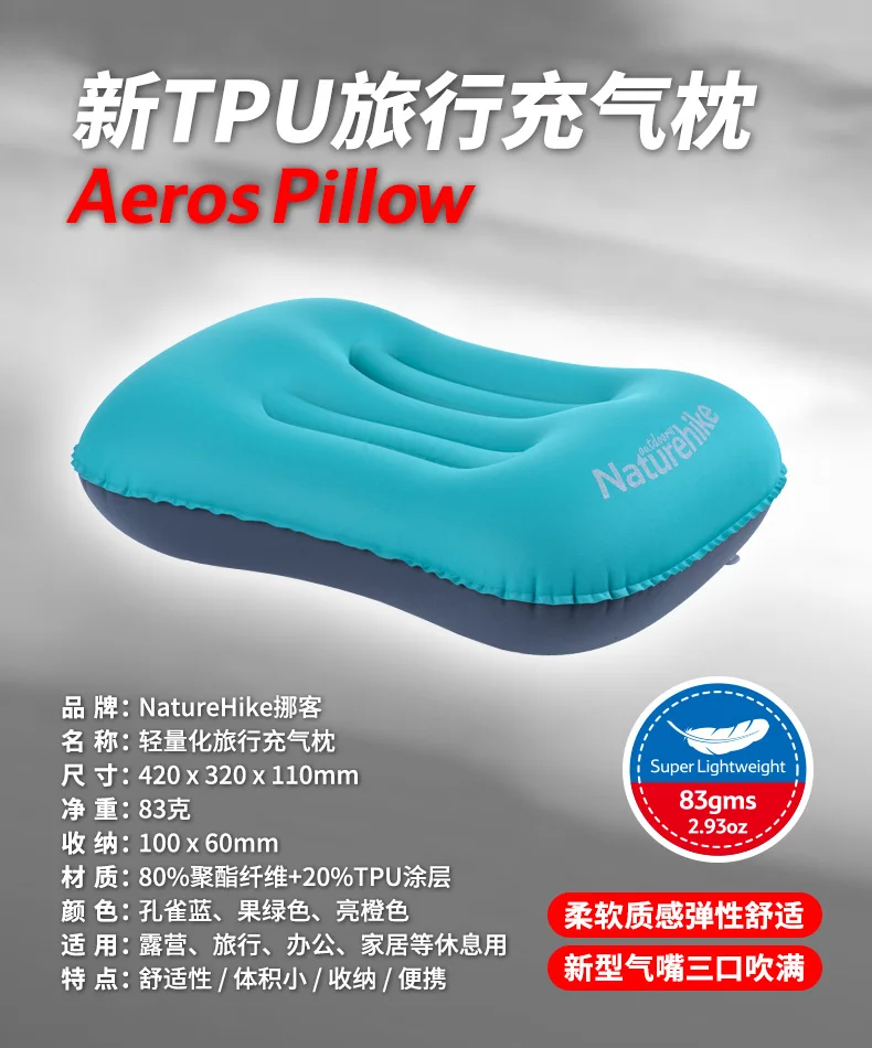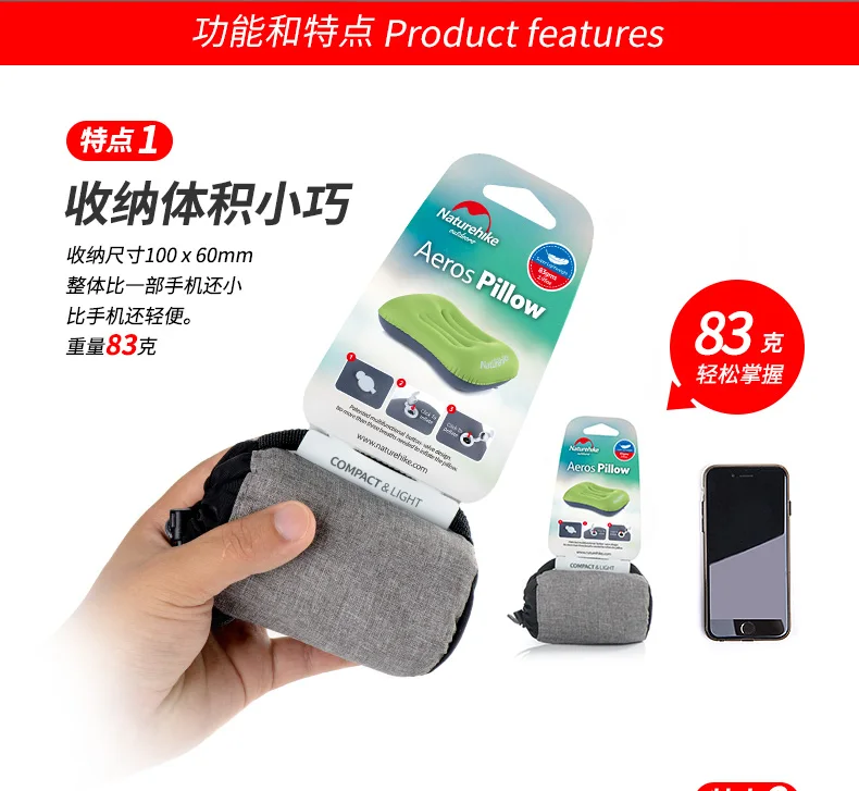 Naturehike Сверхлегкая надувная подушка Высота 12 эластичная губка Бесшумная Подушка