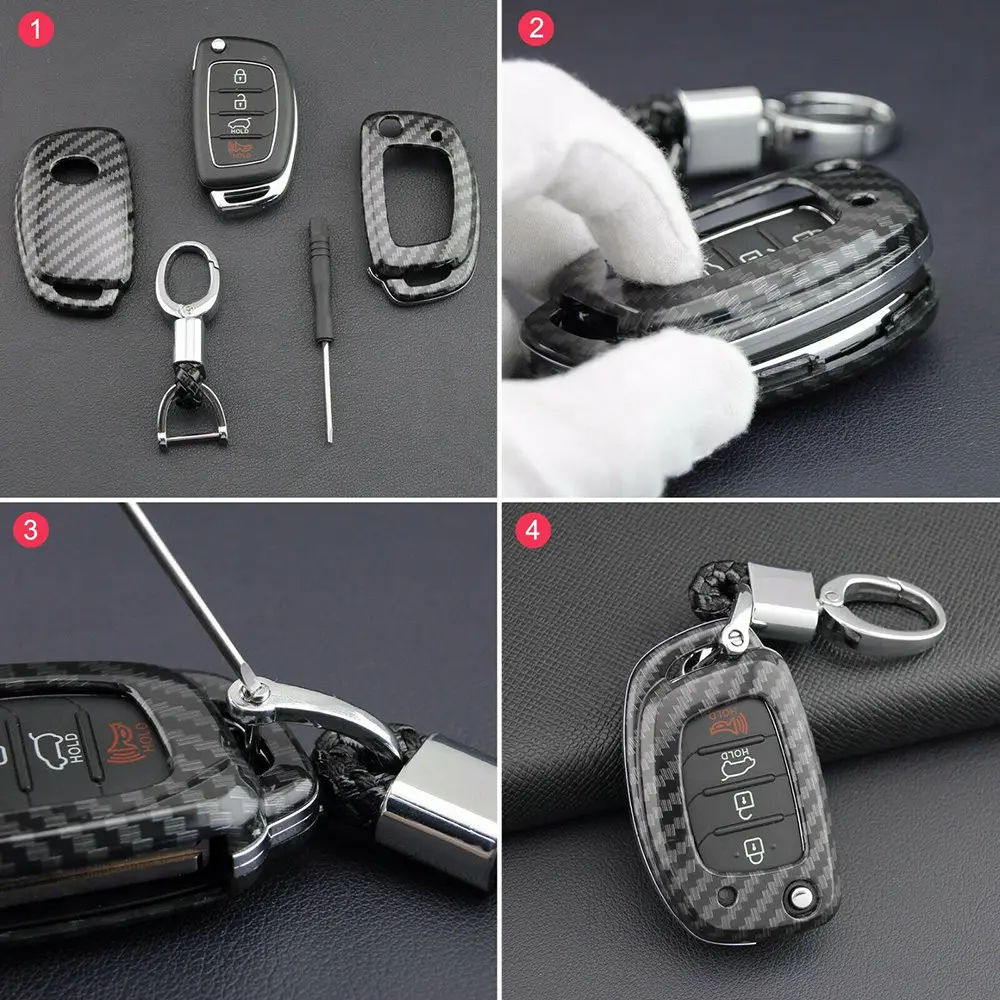 Чехол для ключей для автомобиля из углеродного волокна, имитация флип-ключа для Hyundai Sonata Tucson Elantra
