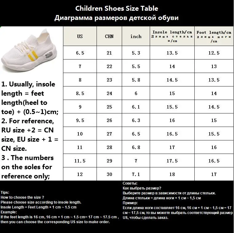 1. При заказе детской обуви. Пожалуйста, выберите размер в соответствии с внутренней длиной. Удобная необходимо ориентироваться на длину: длина стопы + 0,5-1 см = Внутренняя длина. 2. Если вы не знаете, как выбрать лучший размер для детей, пожалуйста, свяжитесь с нами, и мы предложим вам размер обуви! 3. Как Измерить: