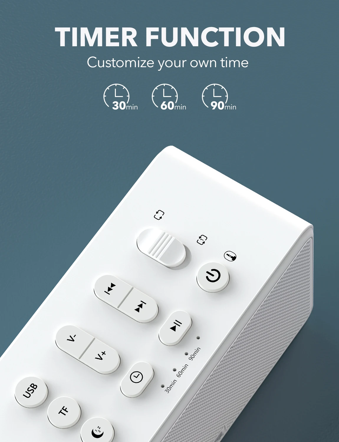 C10 помогает вам блокировать отвлечение и создать идеальную среду для сна, релаксации или концентрации. Выберите из 24 звуков природы, включая белый шум, гром, океан, дождь, летнюю ночь, птичий крик, сердцебиение и многое другое и отрегулируйте громкость по вашему вкусу. Сном? Таймер автоматического отключения включает в себя 30-60-и 90 минутах варианты для того чтобы повернуть C10 ВЫКЛ. Он легкий, легко переносится и идеально подходит для путешествий-никогда не пропустите Ночь сна снова!