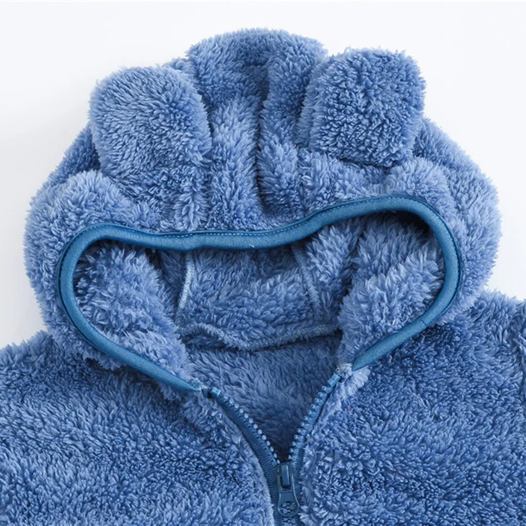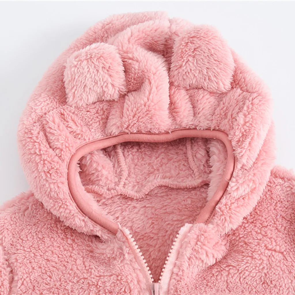 Toddler Kids Baby Gril Boy Cute Ear Zipper Solid Thick Hooded Coat Warm Outwear