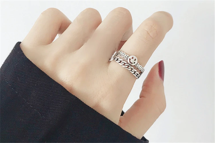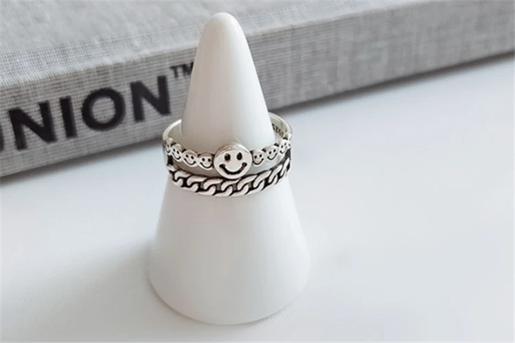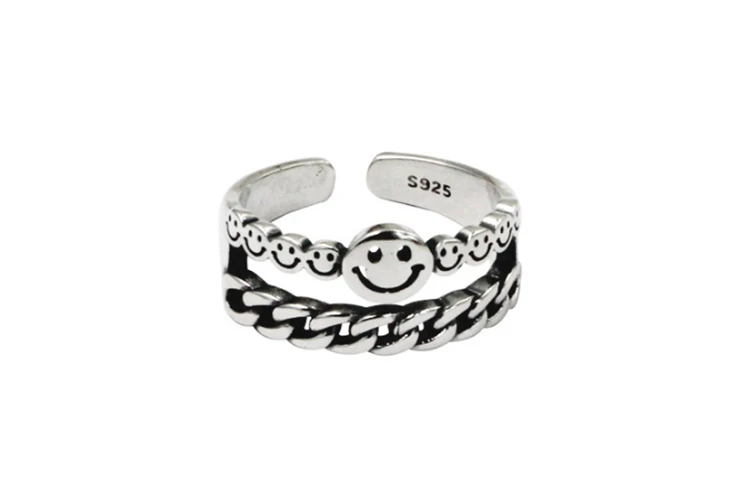 Женский комплект из серебра горячая Распродажа пробы в стиле стимпанк, с улыбающимся лицом, античный перстень, скрученное Ювелирное Украшение для невесты из стерлингового серебра 925 пробы