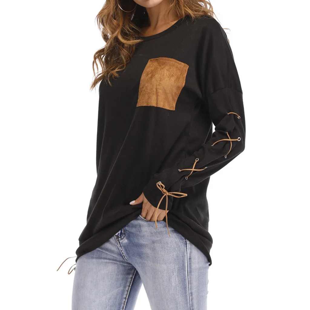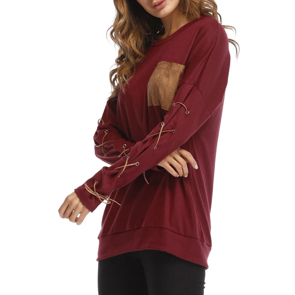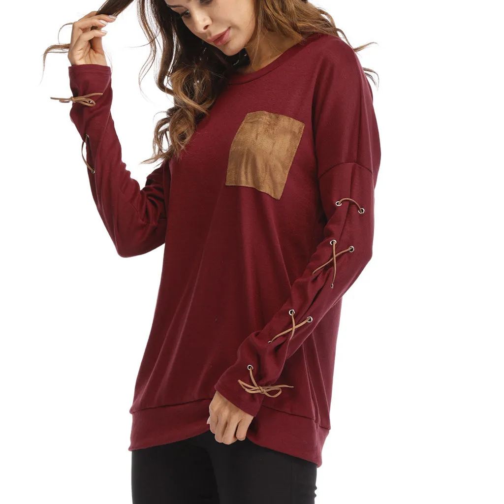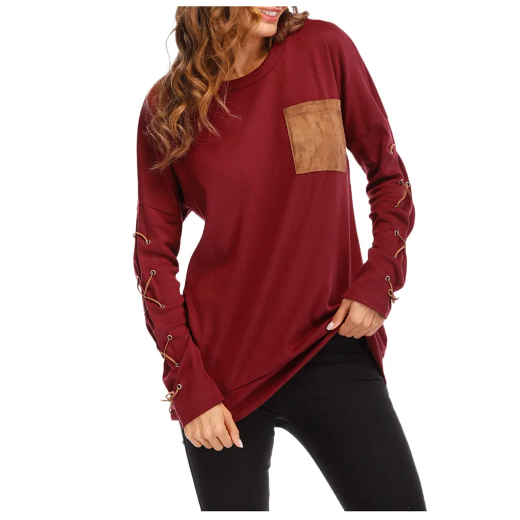 Женская толстовка с круглым вырезом и длинными рукавами с ремешком на манжете и карманом