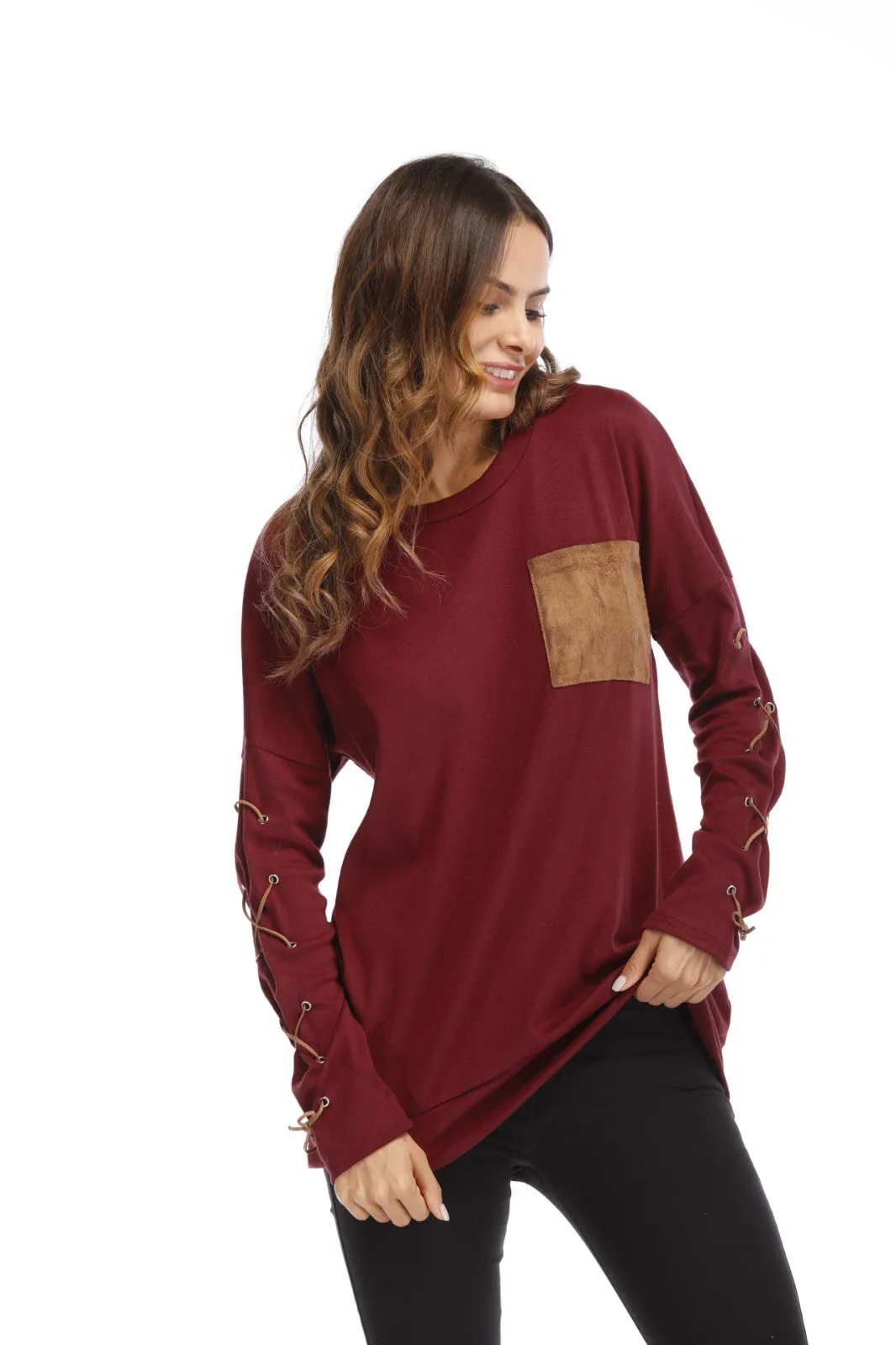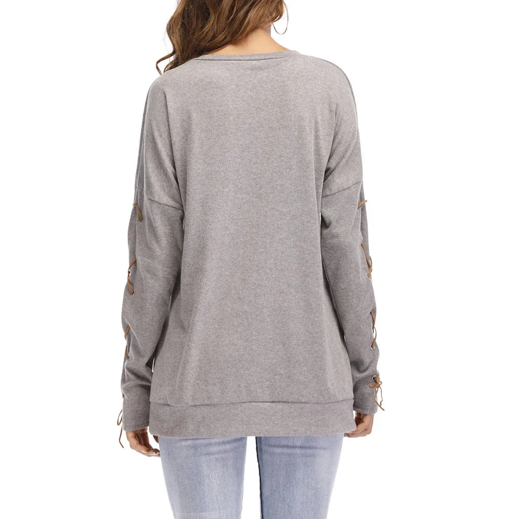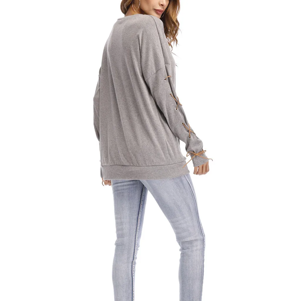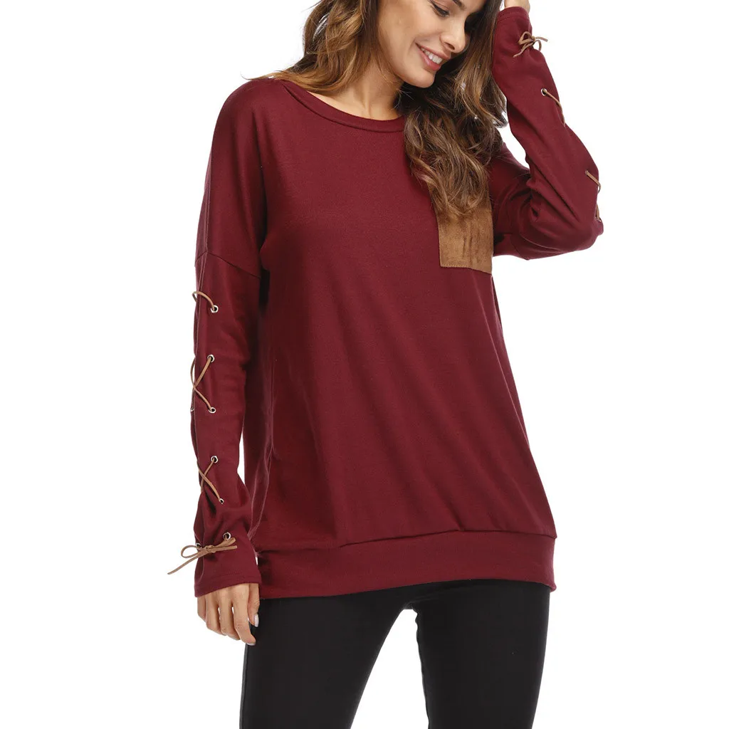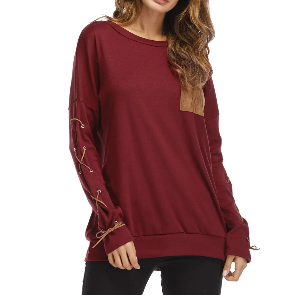 Женская толстовка с круглым вырезом и длинными рукавами с ремешком на манжете и карманом