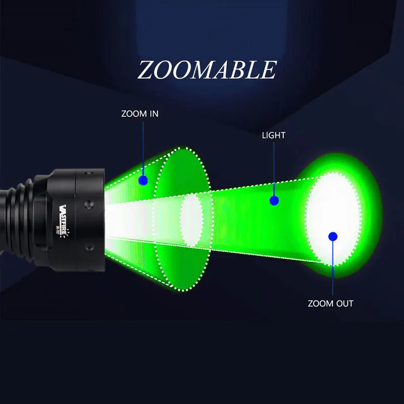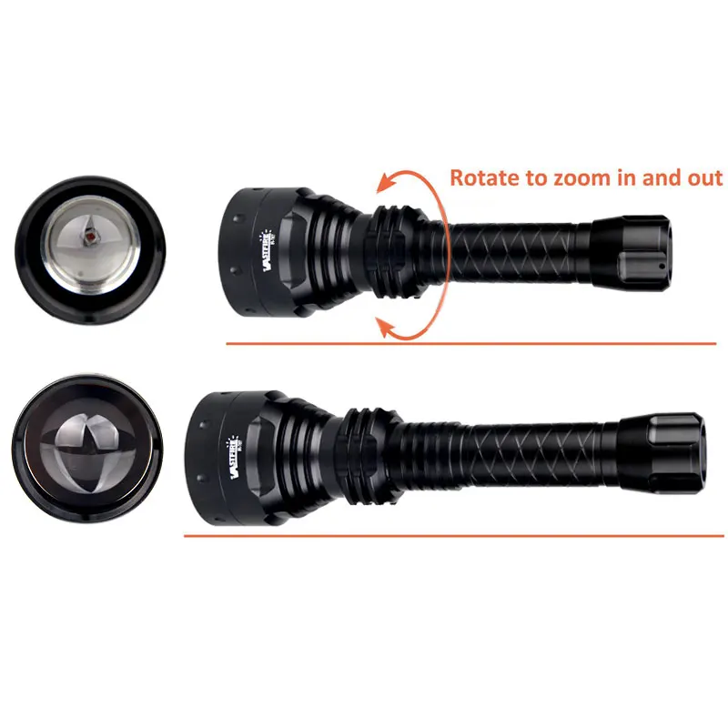 Brand NameVASTFIREModel NumberT67 Zoom Focus Adjustable TorchColorWhiteFunctionShock ResistantFunctionHard LightFunctionSelf DefenseOriginMainland ChinaItem TypeFlashlightsWaterproofYesWattage10WChargerRechargeableFocal LengthAdjustableCertificationROHSCertificationCCCCertificationceBody MaterialAluminumLight SourceLED BulbsLighting Distance200-500 mFlashlight Typecamping,hiking,fishingZoomYesSwitch ModeZoom InLumen1300Support DimmerSingle fileMeasurement unitpiece/piecesEach pack1