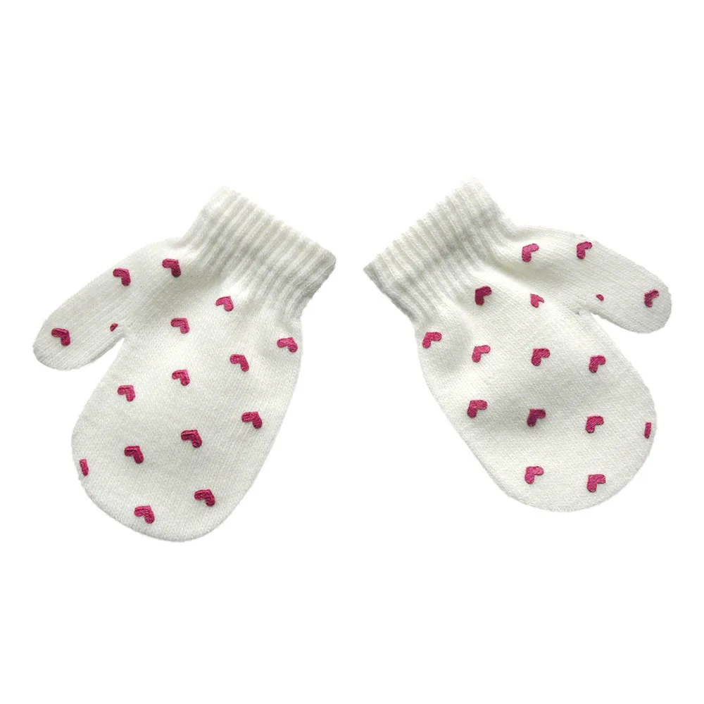 Детские милые теплые зимние перчатки с принтом сердца для мальчиков и девочек