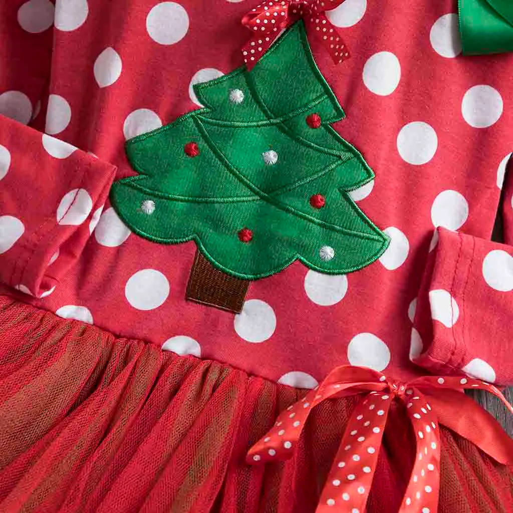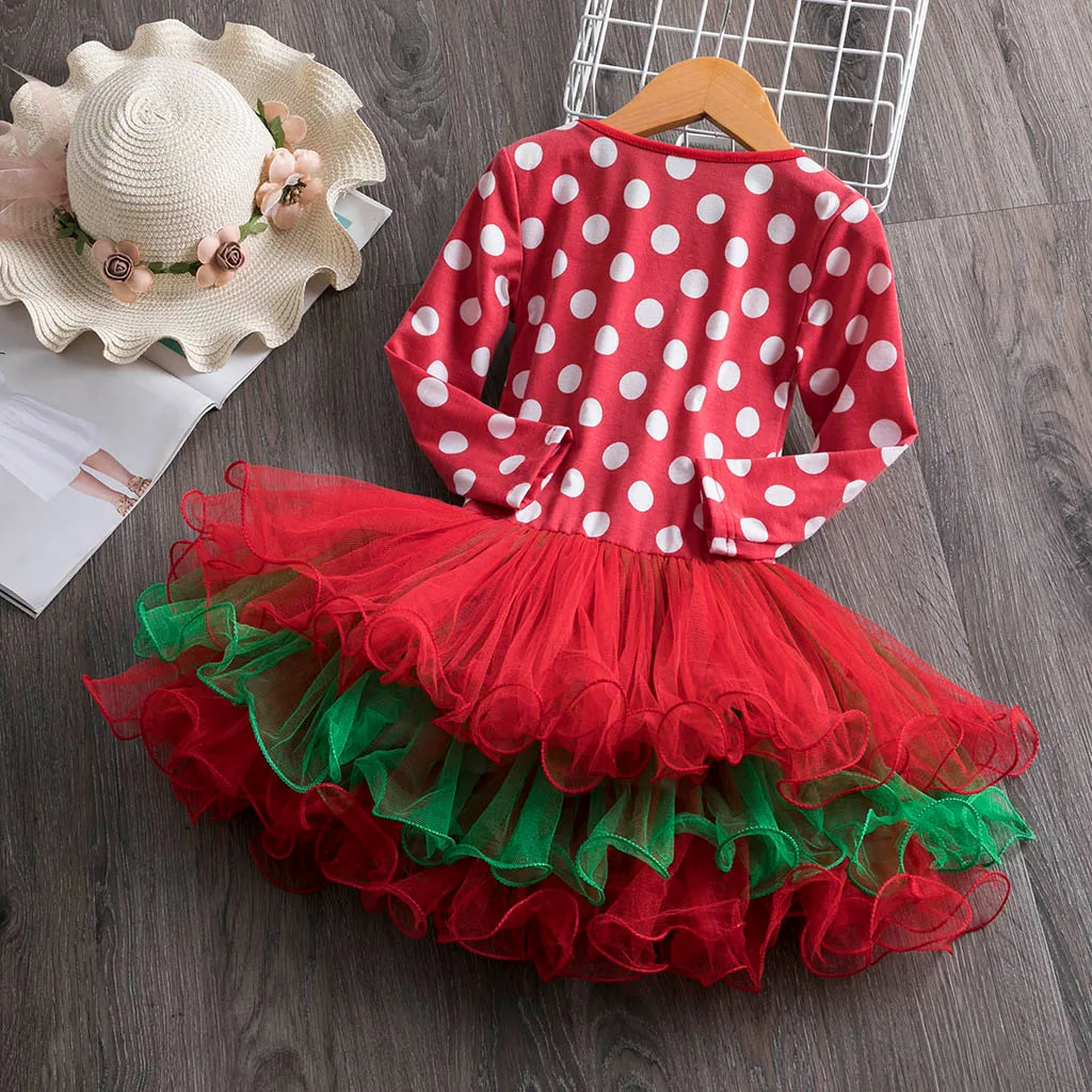 Фатиновое платье в горошек с длинными рукавами и принтом рождественской елки для маленьких девочек