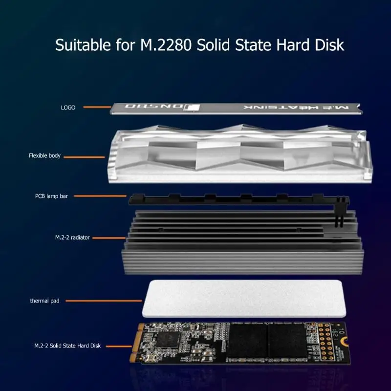 Особенности: Поддержка для ASUS, Gigabyte, MSI и прочие материнская плата с выходом 5V 3Pin для того чтобы достигнуть ARGB материнская плата светильник синхронизации эффект. Стеклянная лампа состоит из 6 лампочек, высокий внешний вид. Подходит для M.2 2280 твердотельного накопителя. Установка без инструментов, фиксация пряжки. Параметры: Применимый Жесткий диск: для M.2 2280 твердотельный жесткий диск (рекомендуется односторонний пластинчатый гранулированный жесткий диск) Метод рассеивания тепла: Пассивное рассеивание тепла Интерфейс: 5 В 3pin Эффект на светильник: Поддержка синхронизации материнской платы 5 в ARGB, также можно зафиксировать с помощью отдельного великолепного контроллера 5 В (не включая покупку самостоятельно), одного цвета, радуги, многоцветного цикла, дыхание, мигание, аудио связь и другие эффекты. Размеры: 75X25,2X19,3 мм/2,95X0,99X0,76 "(Д X Ш X В) Примечания: 1. Из-за различных настроек монитора и светильник эффект, фактический цвет элемента может быть s светильник ly отличается от цвета, представленного на снимках. Спасибо! 2. Возможны отклонения в 1-3 мм вследствие измерений вручную.