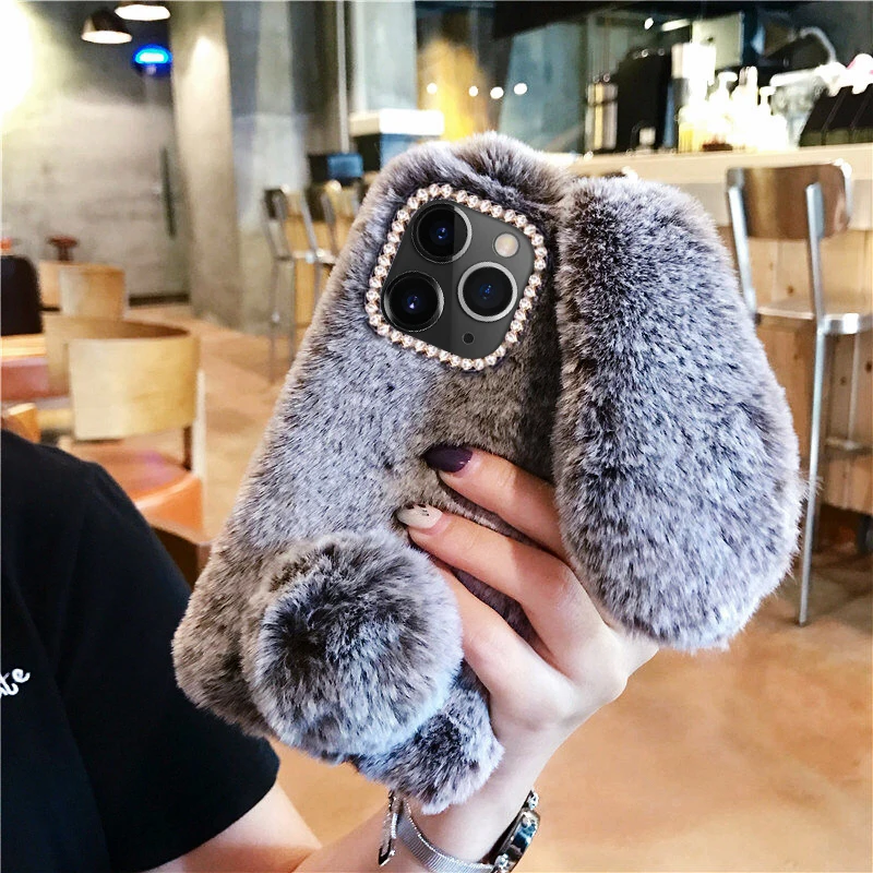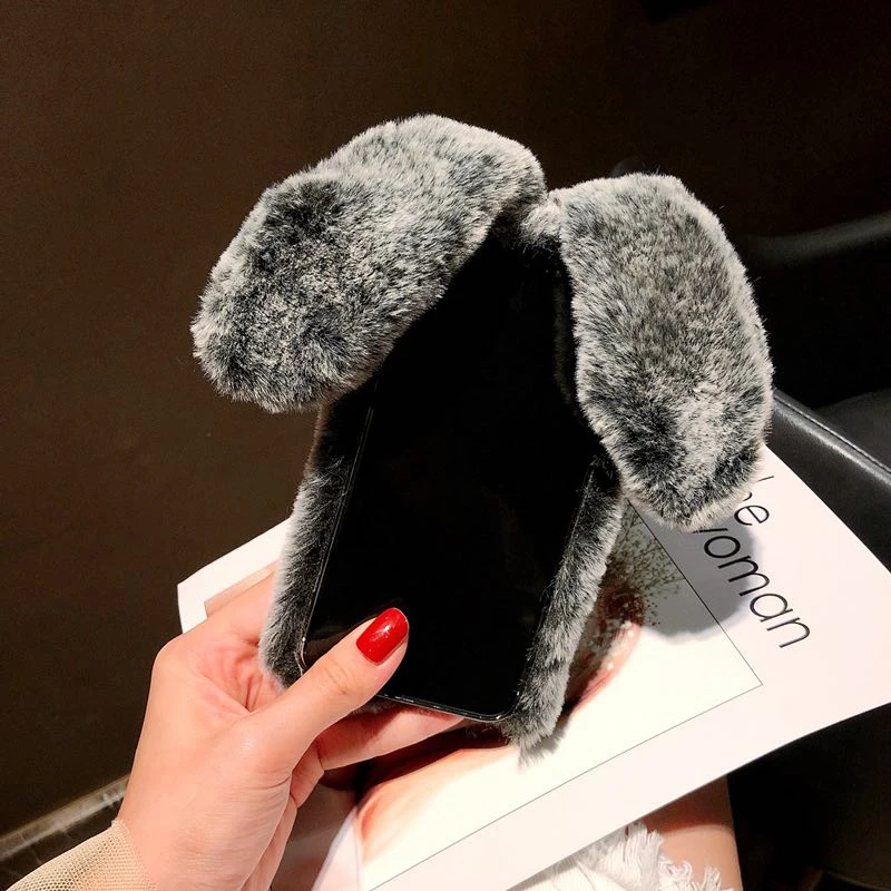 Роскошный плюш теплый чехол для телефона iPhone 11 Pro Max XR X XS Max кроличьи ушки пушистый меховой чехол для iPhone 6 6s 7 8 Plus пушистый чехол