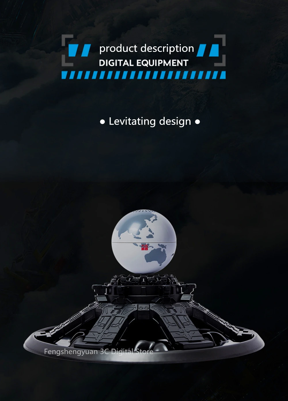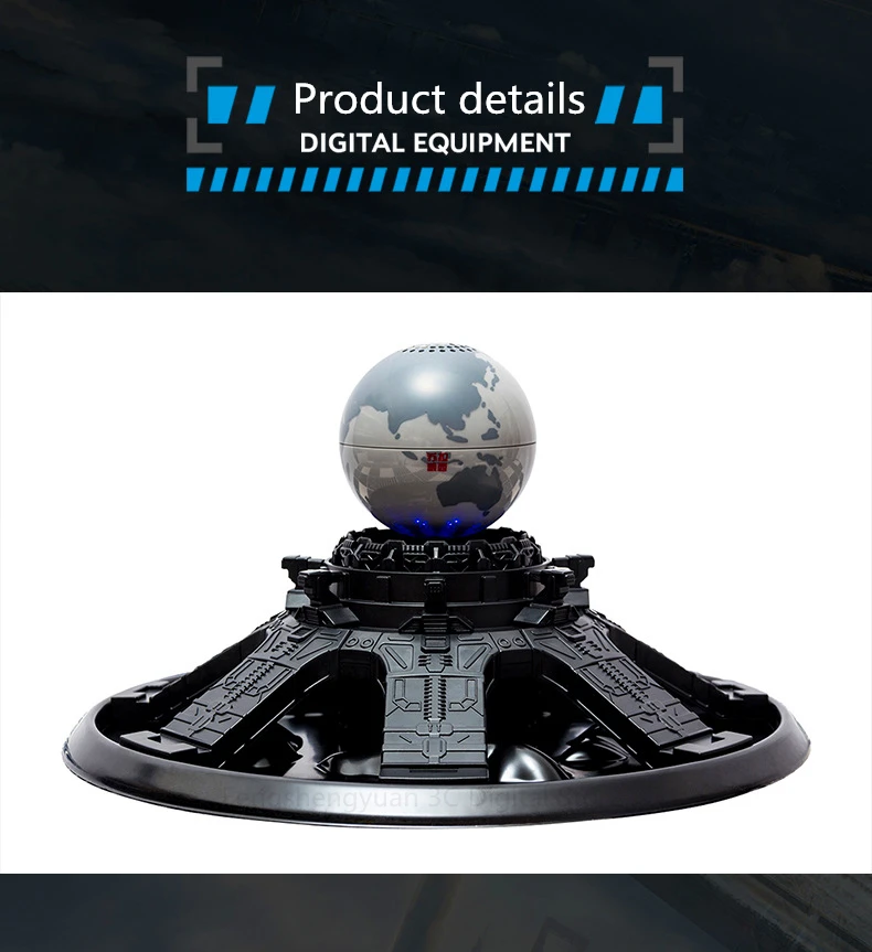 Параметры продукта Название: планетарный двигатель, левитирующий динамик Поддержка: Bluetooth 4,1 Рабочее напряжение: 3,7 V Выходная мощность: 3 Вт Отношение сигнал-шум: >80dB Искажения: <1% Базовый размер: 13x2,5 см Размер заземления: 5 × 5 см