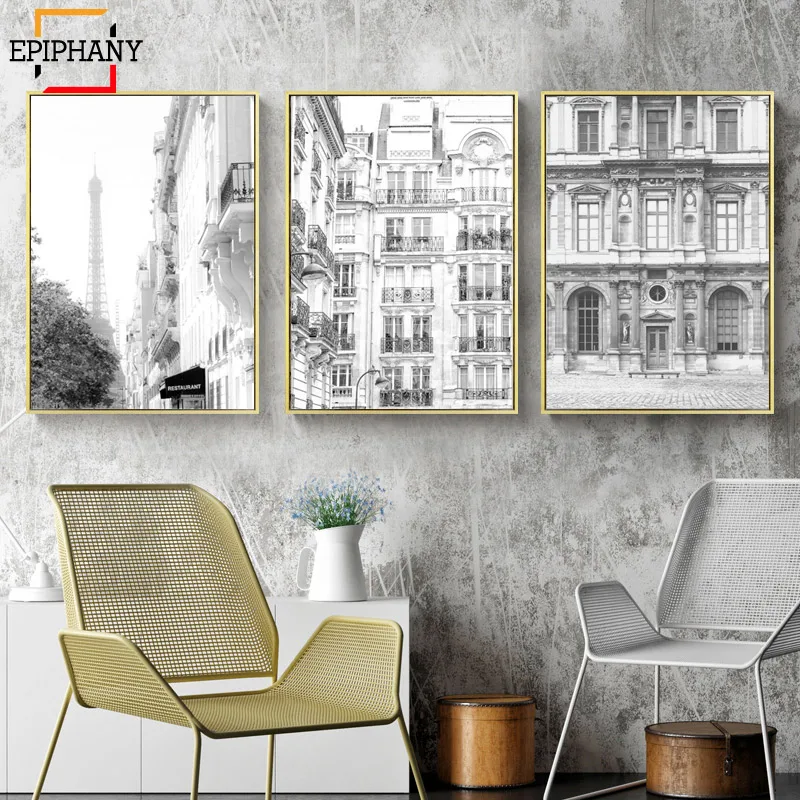 Черно-белые принты, Париж, настенные художественные архитектурные фотографии, Современная Картина на холсте, настенные картины для декора гостиной