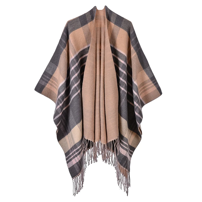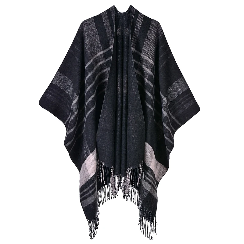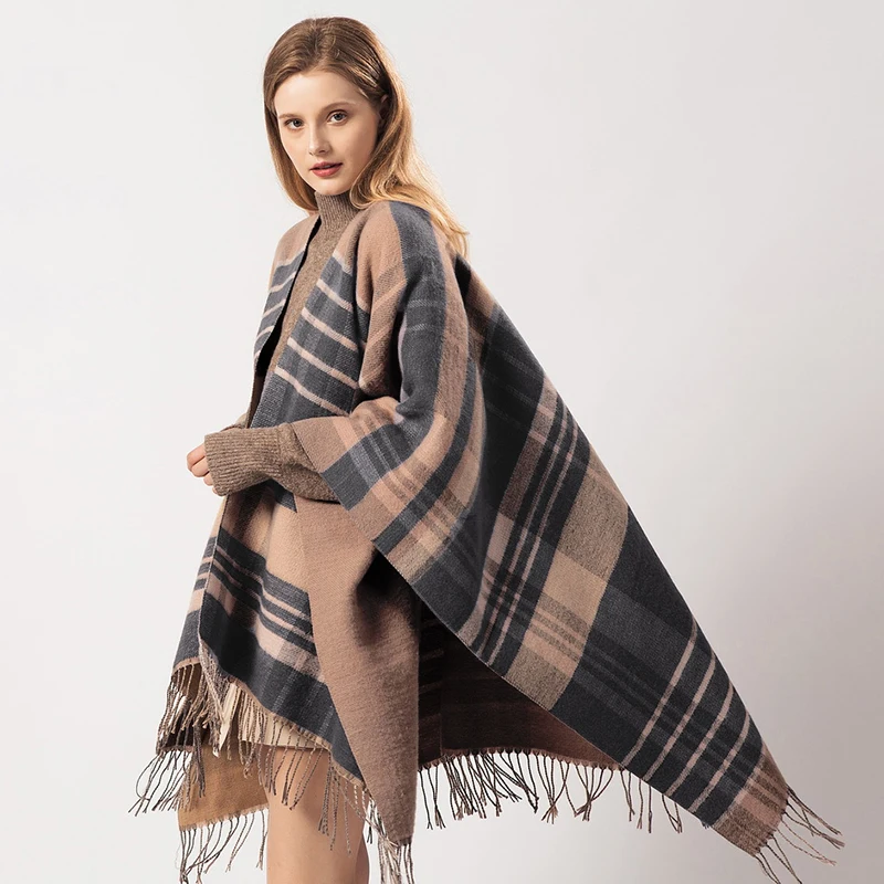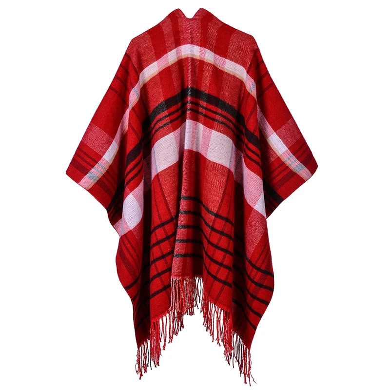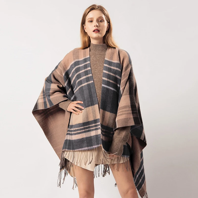 Зима и мода не являются взаимоисключающими. В этом трендовом трикотажном пончо вы будете выглядеть тепло. Он имеет большой корпус со стильными цветными блоками и клетчатым принтом, повседневный Открытый спереди и асимметричный подол. Просто приходите и сделайте шикарный образ в этой мягкой удобной шали!