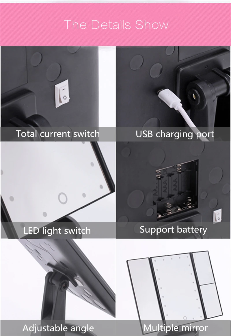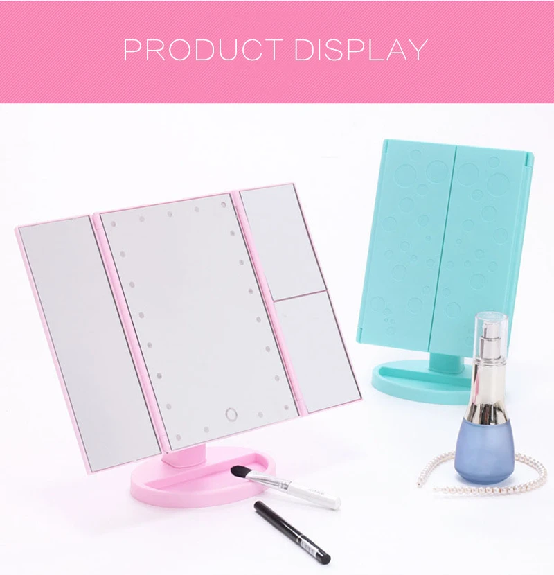 Название продукта: светодиодный сенсорный экран, зеркало для макияжа, настольный макияж, 1X/2X/3X/10X, увеличительное зеркало Vanity 3, складное регулируемое зеркало, 22 светильник льника