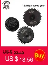 Использование усовершенствованной стали с ЧПУ для замены оригинальной передачи. Может повысить долговечность, эффективность и надежность. Это может уменьшить скорость, но начальная скорость на пистолет (FPS) значительно увеличилась. Это важный элемент модернизации коробки передач.