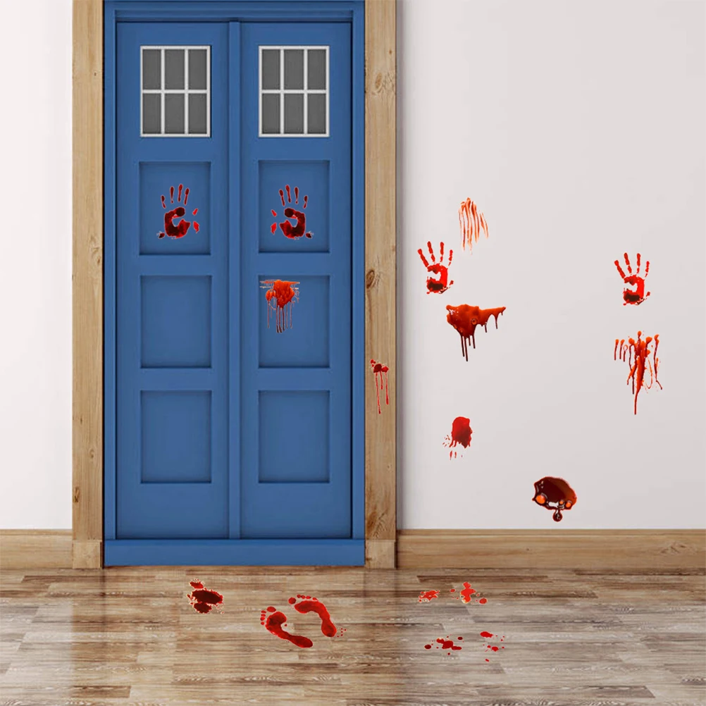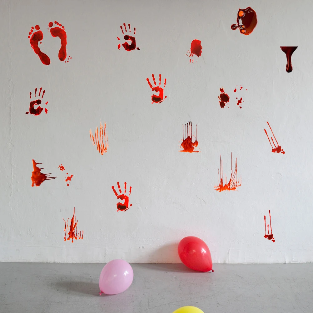 Рисунок и отпечаток: рисунок и Наклейка на стену, добавляют атмосферу Хэллоуина.1 Набор наклеек с принтом «кровавые руки»