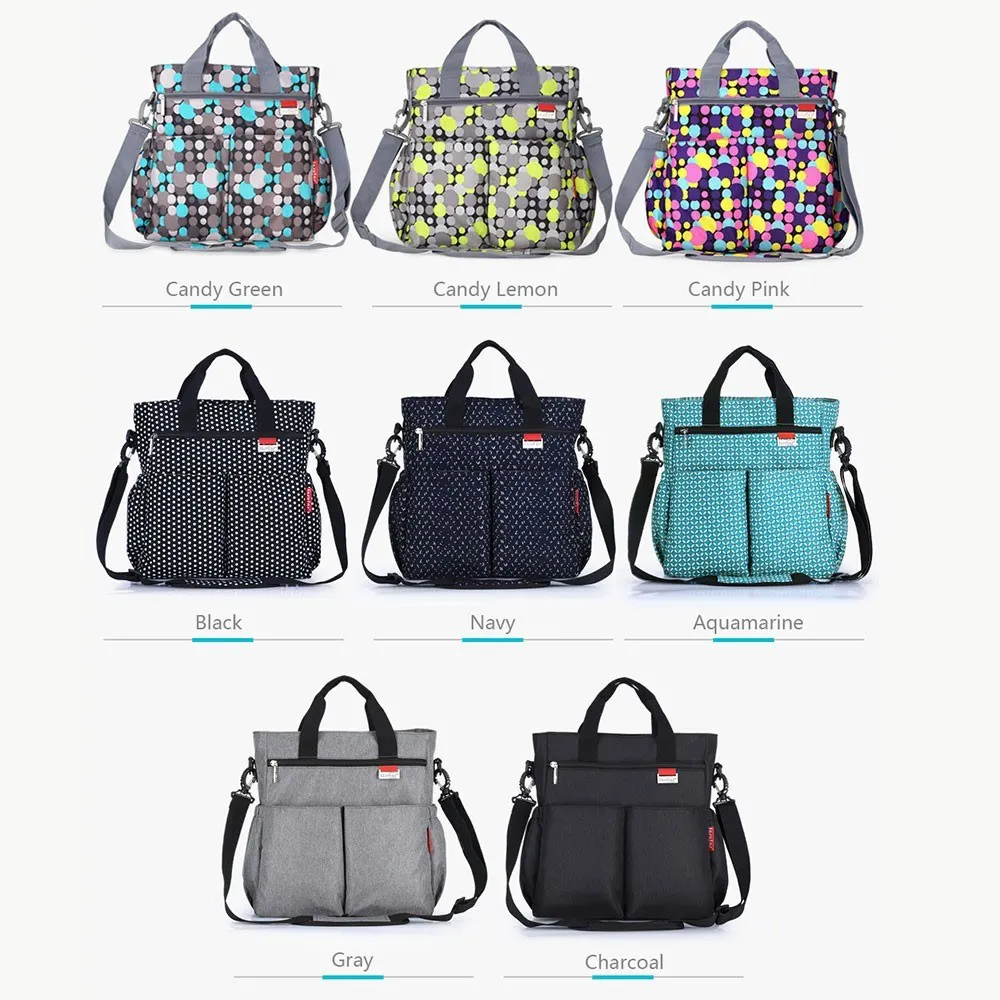 Поставляется с практичными лямками для коляски, легко для переноски, дополнительный коврик для пеленки и водонепроницаемый мешок для влажной одежды или использованных подгузников.