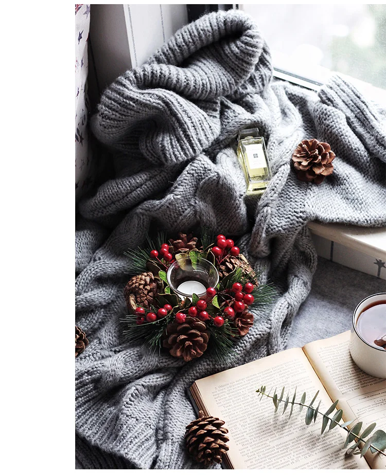 Рождество Pinecone сосновые иглы подсвечник американский кантри Сад домашний декор для окна