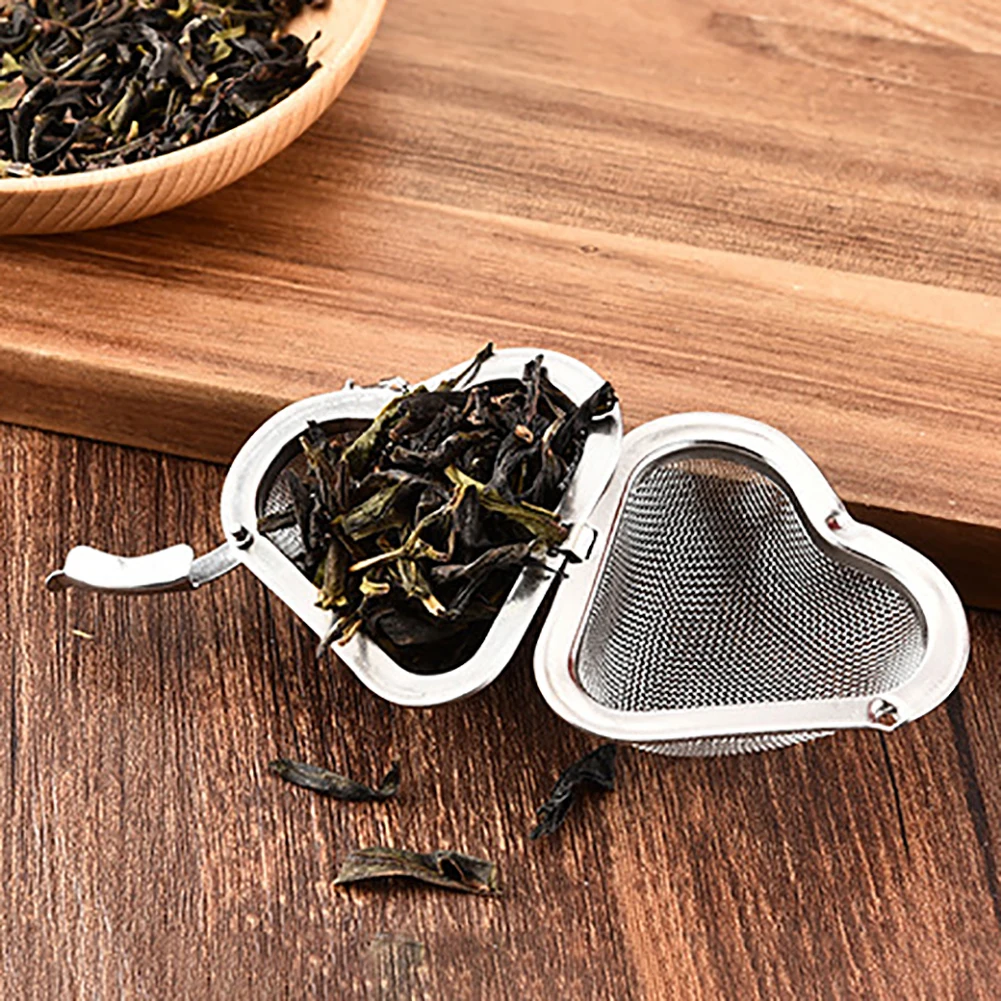 В форме сердца Нержавеющая сталь сетка для заварки чая фильтр с цепным крюком