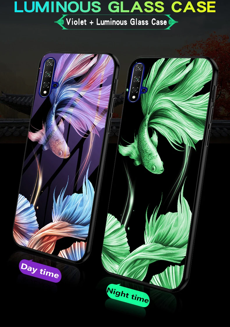 Чехол из закаленного стекла для телефона дляHuawei Honor 20 20SЧехлыПокрытие светящееся роскошное стеклянное покрытие для honor 20 Оболочка Фиолетовый светильникЗадняя Чехлы для крышки Fundas Capa
