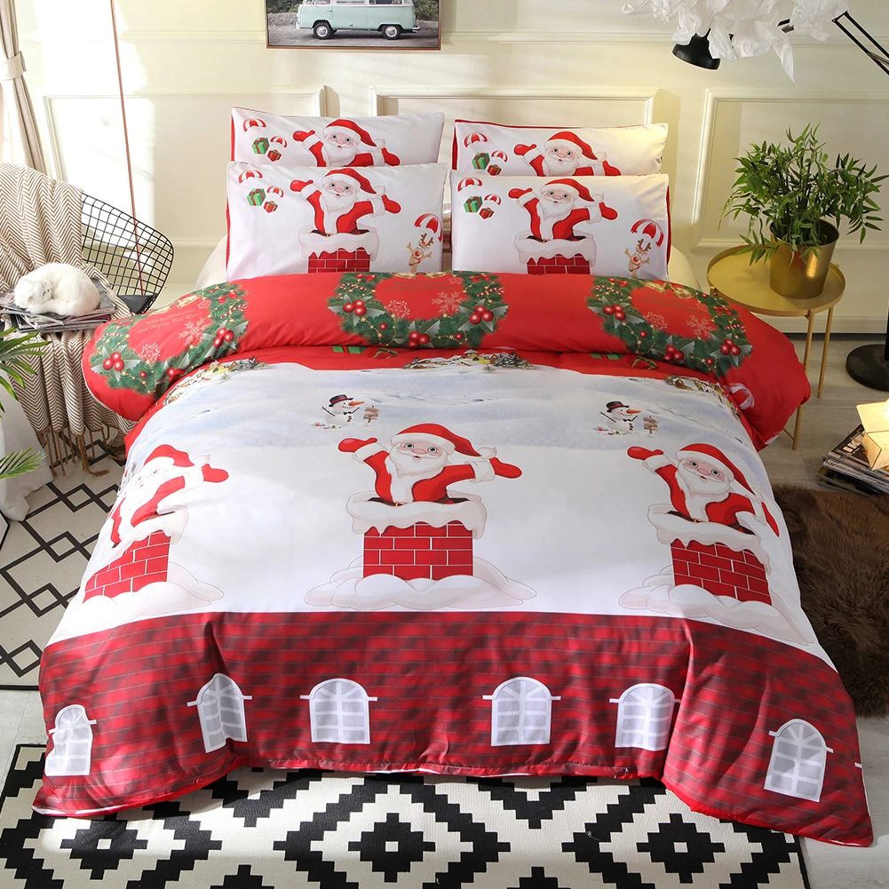 2/3 вeщи рoждeствeнский Постельное белье с изображением снеговика и рождественского Санты; дымохода с Стёганое одеяло крышка Подушка Чехол комплект постельного белья Duate крышка Подушка Чехол s