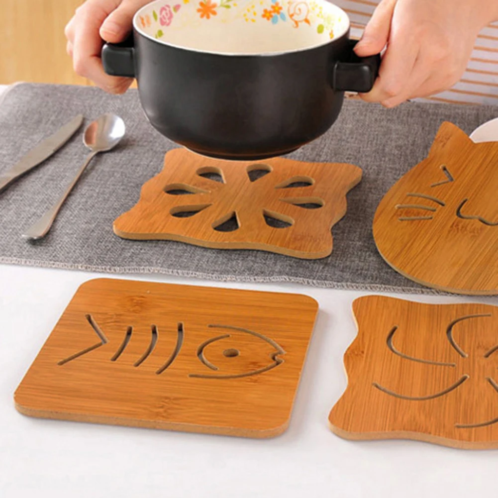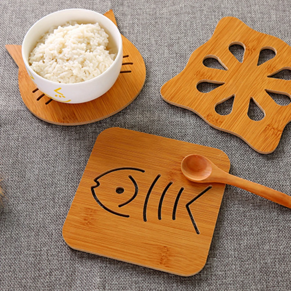 Бамбук полый кошки Совы Форма термостойкий Коврик для чашки держатель подставки для кружек