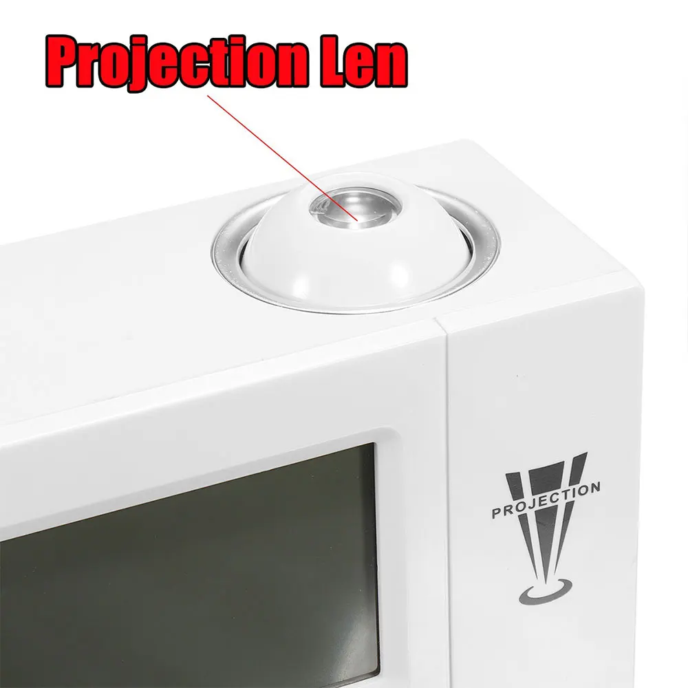 Функция: отображение времени, Проекция времени, отображение температуры, будильник, функция повтора, фоновый свет