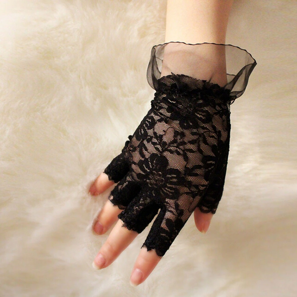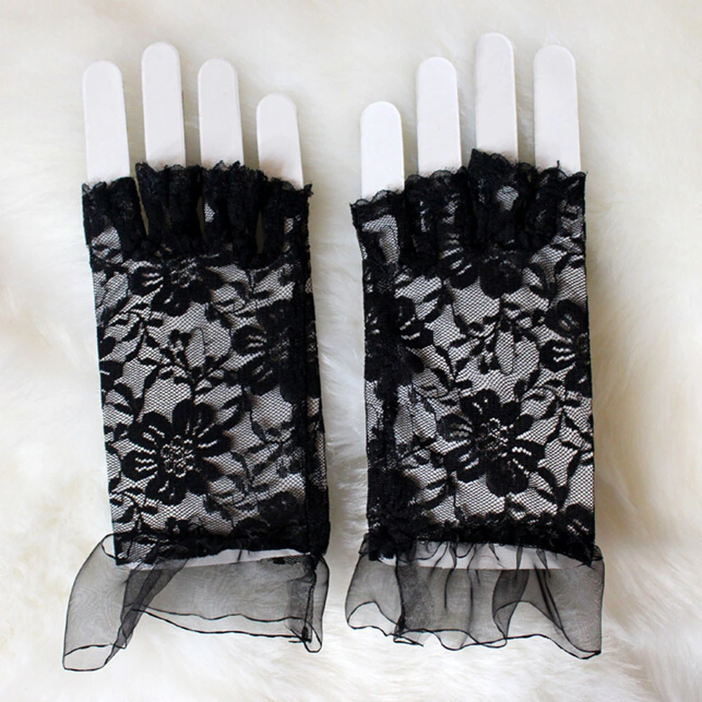 Женские короткие кружевные перчатки без пальцев, винтажные женские перчатки для взрослых девушек