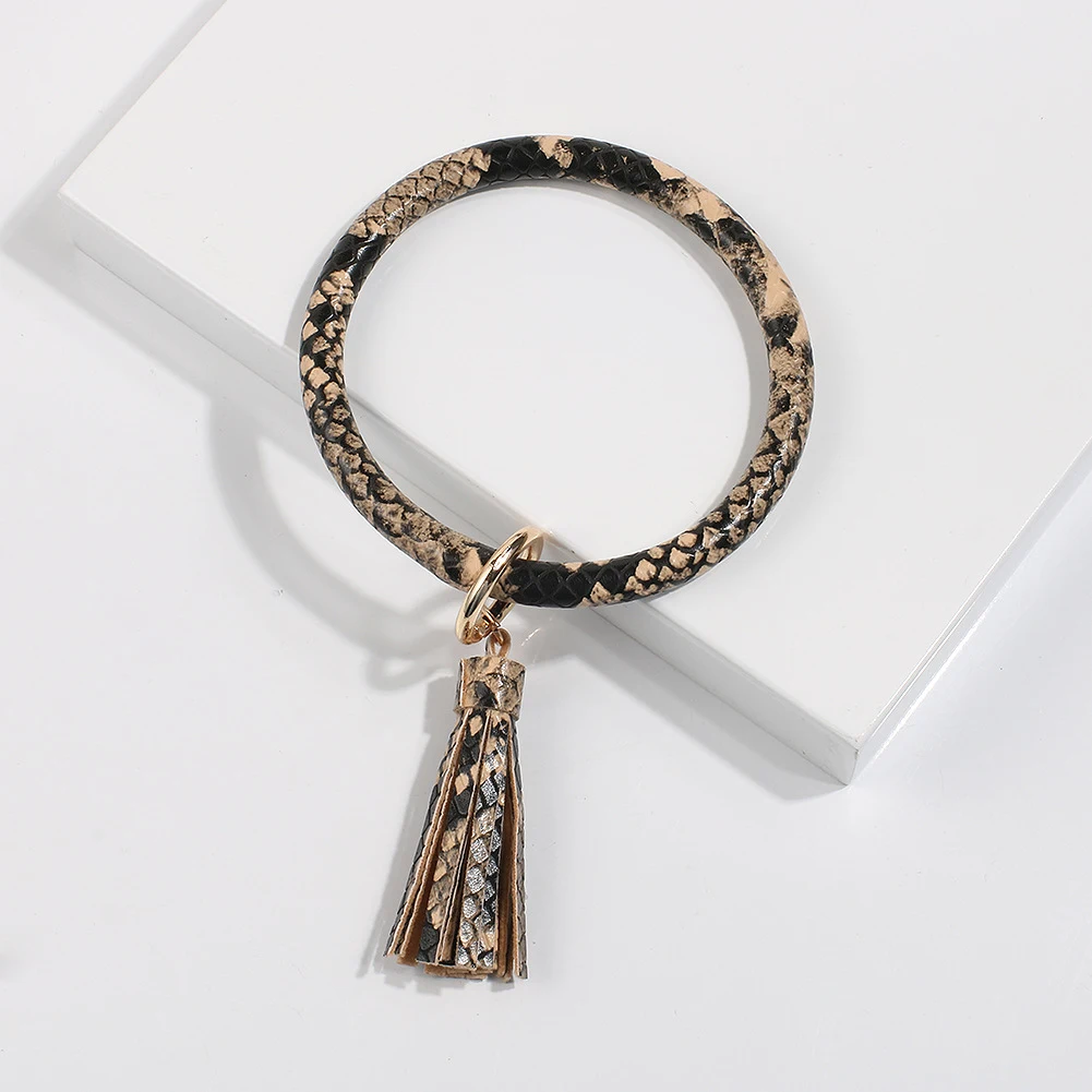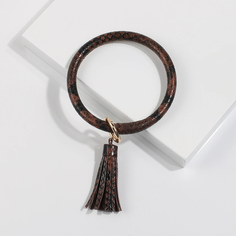 Брелок из искусственной кожи, браслет с кисточкой для женщин, автомобильный брелок, кольцо с цепочкой