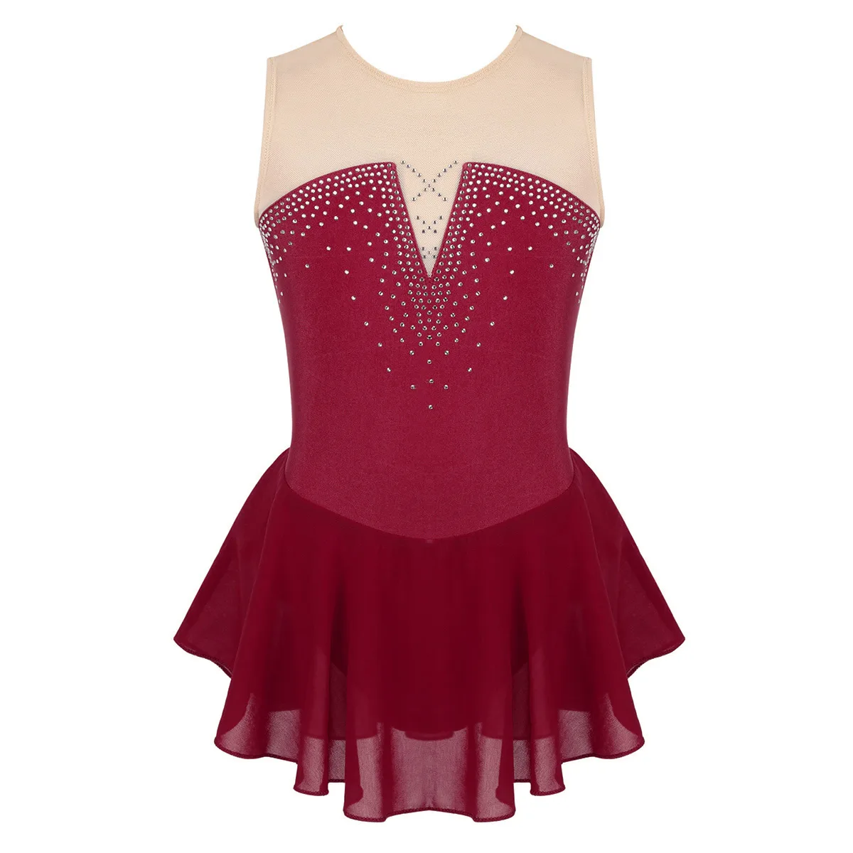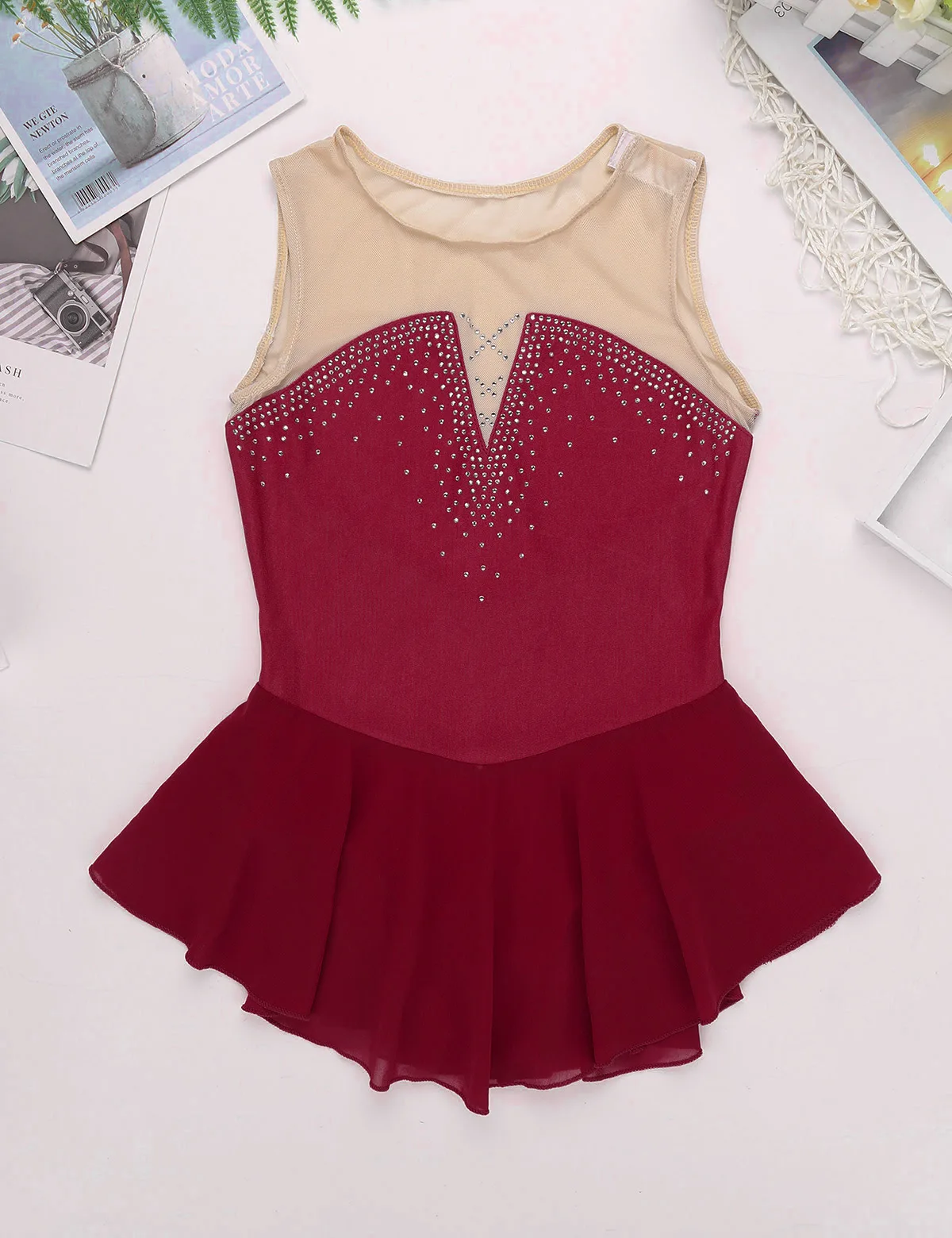 Платье для катания на коньках изготовлено из полиэстера, сетчатого и шифонового материала, ручная стирка.
