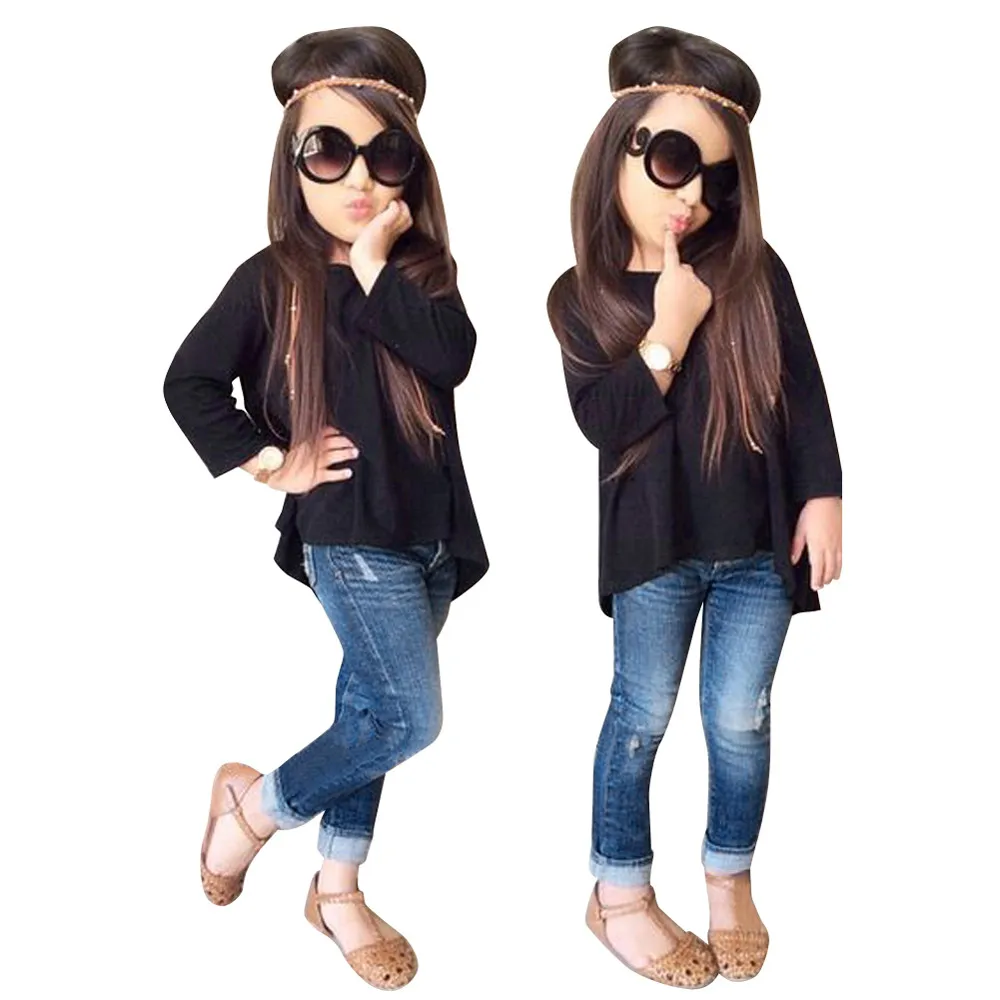 Одежда для маленьких девочек футболка с длинными рукавами Топы + джинсы 1 комплект