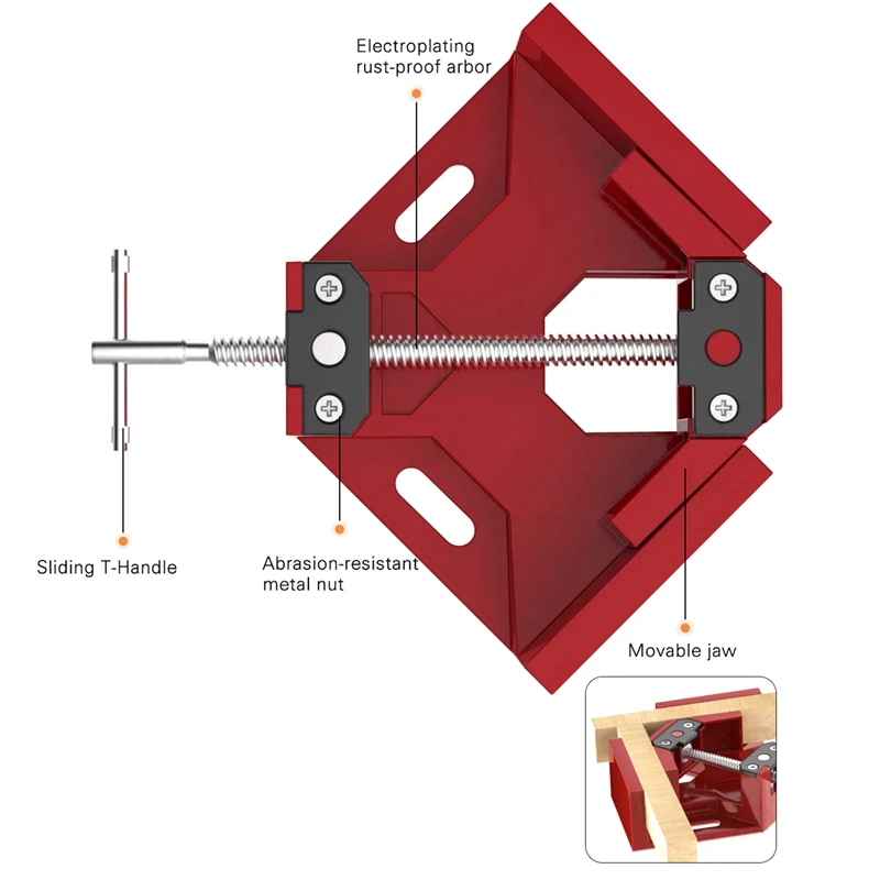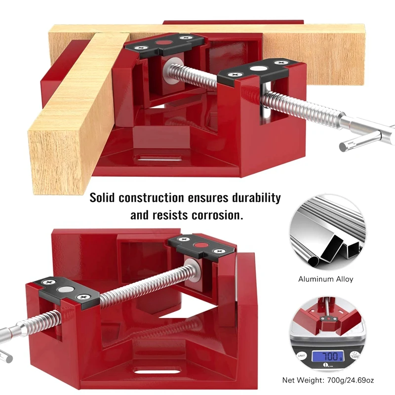 Может использоваться в качестве зажимного устройства для угловых соединений под углом 90 °. Идеально подходит для выравнивания, забивания гвоздей, деревообработки, сварки, завинчивания, изготовления шкафов, коробок и картин.