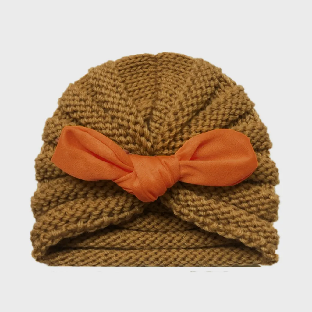 Вязаная шапка с узелком для новорожденных мальчиков и девочек, зимняя теплая шапка головной убор