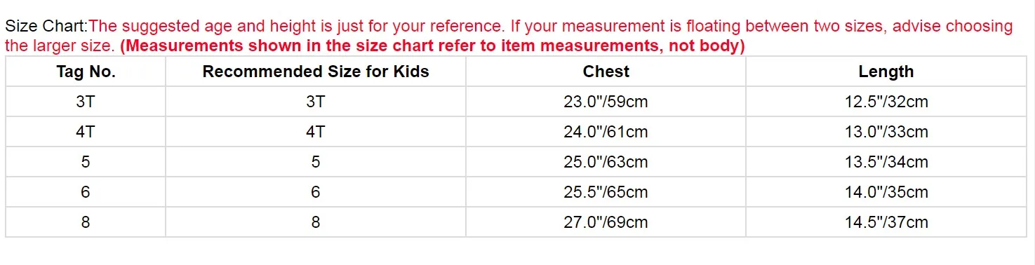 Таблица размеров:Предполагаемый возраст и рост указаны только для справки. Если под ваши замеры подходят два размера, мы рекомендуем выбрать больший размер.(Измерения, показанные в таблице размеров, относятся к измерениям товара, а не к телу)