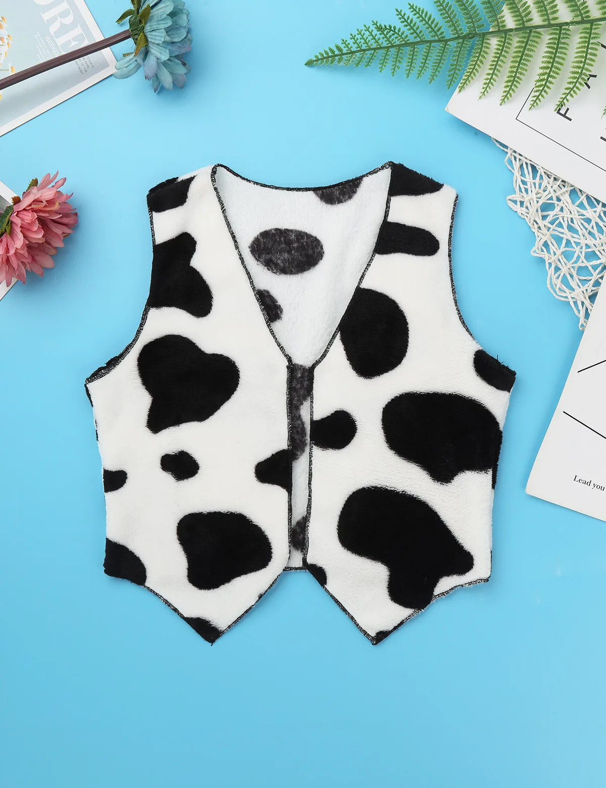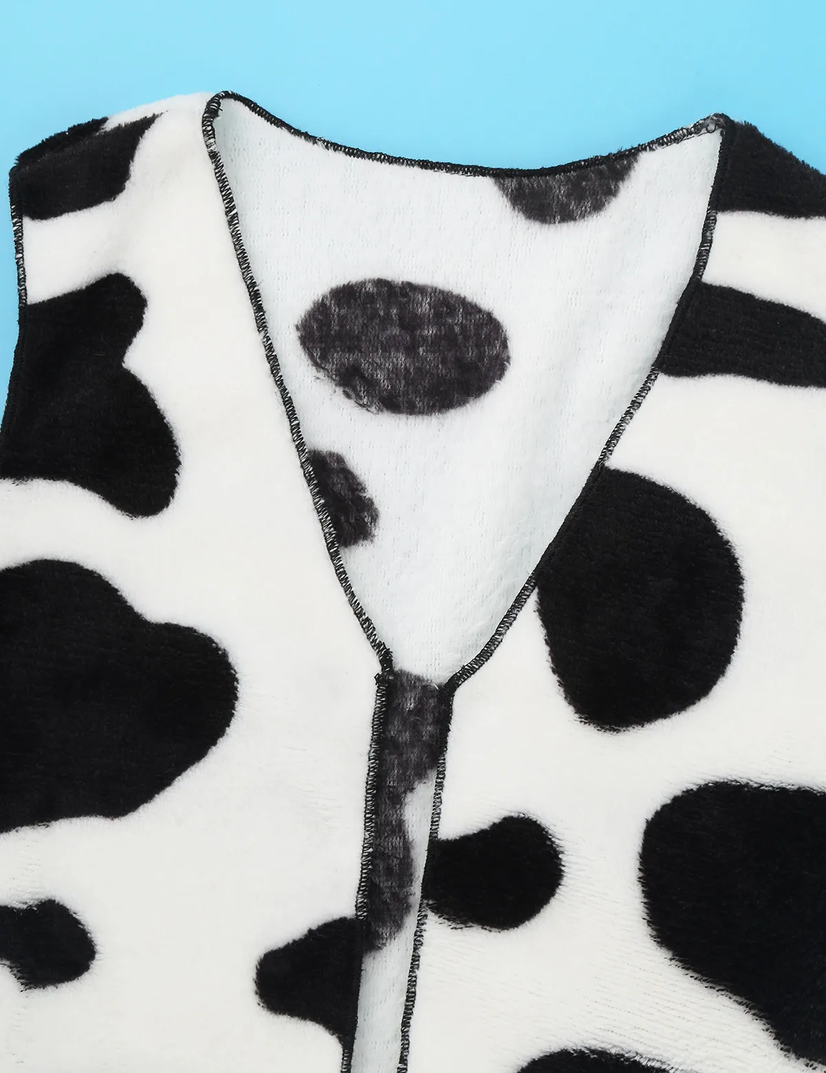 Без рукавов, открытая спереди (без застежек), с черно-белым рисунком коровы.