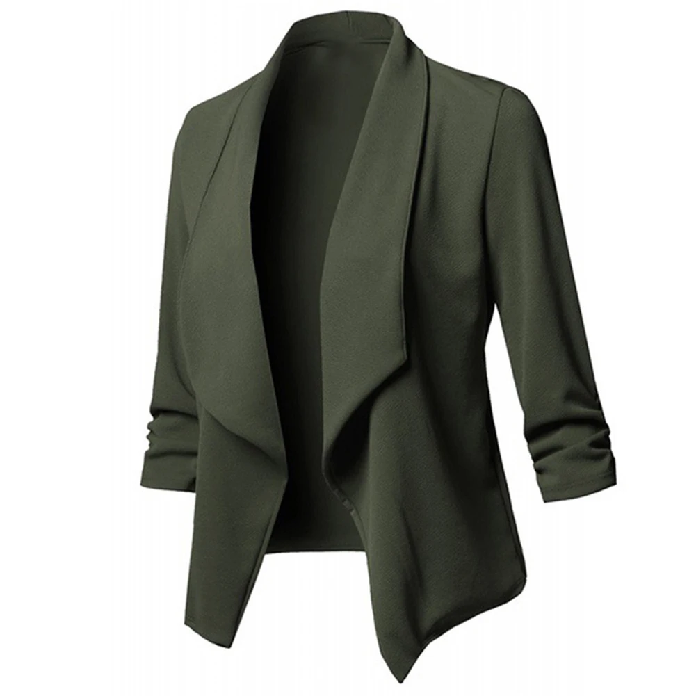 Модный женский Блейзер размера плюс, деловой пиджак с длинным рукавом, кардиган для офиса, деловой осенний костюм