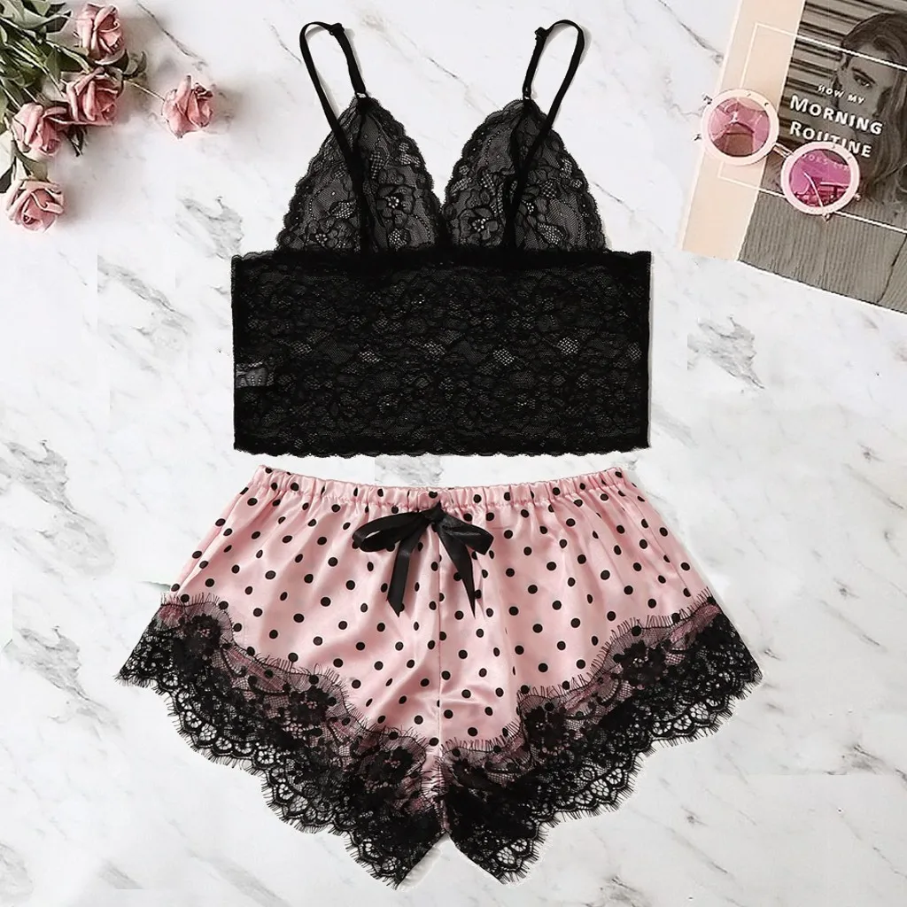 Lingerie Women Pajamas Sexy Lace Silk Pyjamas Set Lingerie Clothes For Women Straps Pijama Ladies Bathrobe Sleepwear Pajama Suit