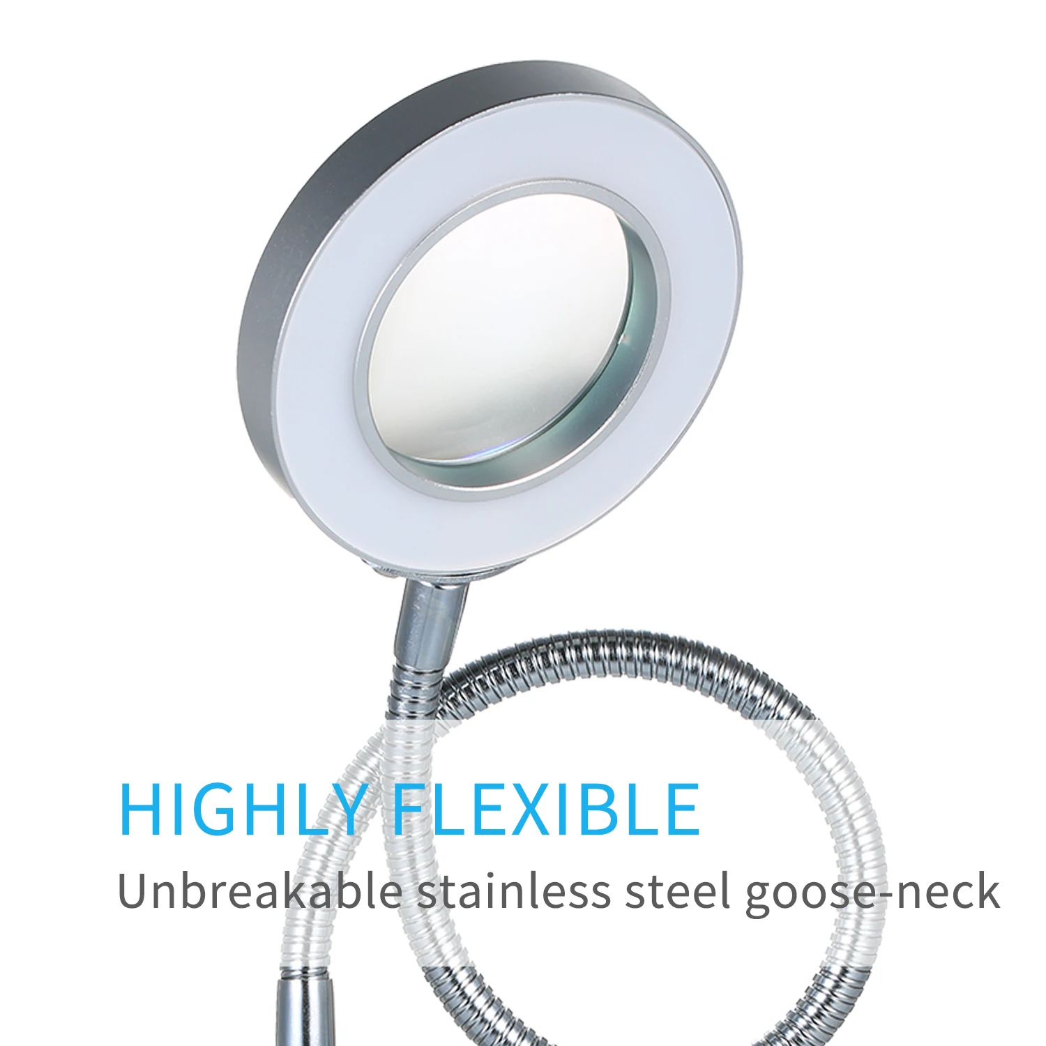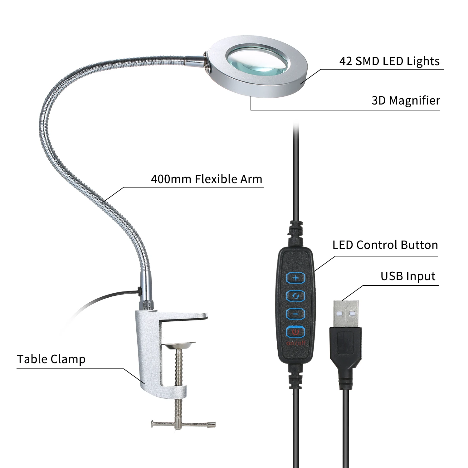 Wildely используется: идеально подходит для пайки, чтения, рукоделия, шитья, вышивки крестом, вязания, изготовления ювелирных изделий, покраски, вышивки, ремонта электроники и т. д. Зажим может прочно держаться на столе, кровати, экономия пространства и предлагает лупу и светильник без рук.