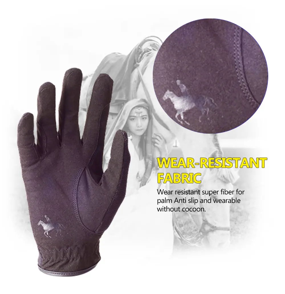 Ладонь ладони перчаток для верховой езды изготовлена из супер волоконного материала, который не скользит и прочный. Безопасно и надежно использовать в течение длительного времени.