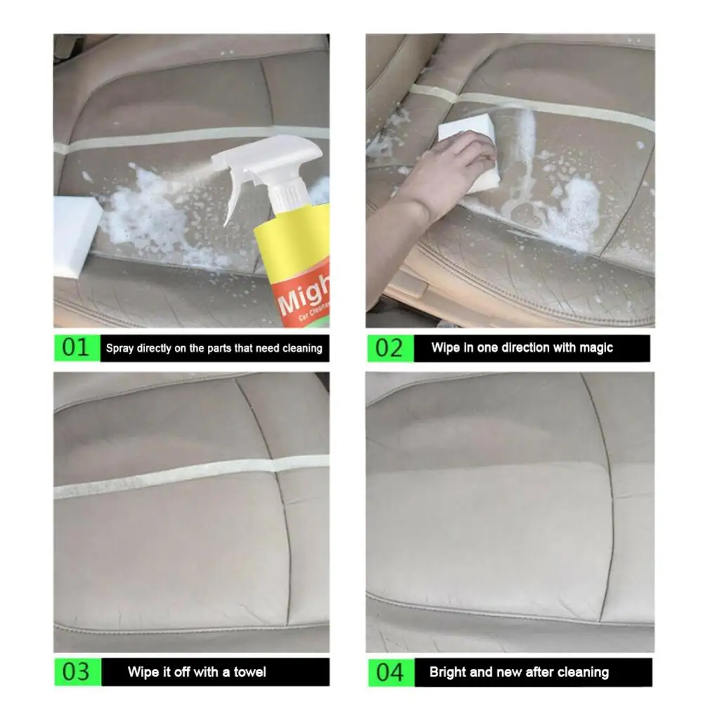 5. Мощный Автомобильный Очиститель имеет свежий аромат, который может сохранить запах вашего интерьера. Это супер легко и просто использовать просто распылите непосредственно очиститель в область и используйте полотенце или губку, чтобы протереть до тех пор, пока не удалится нежелательная грязь. Затем снова протрите чистым полотенцем после чистки.
