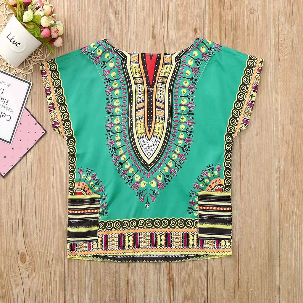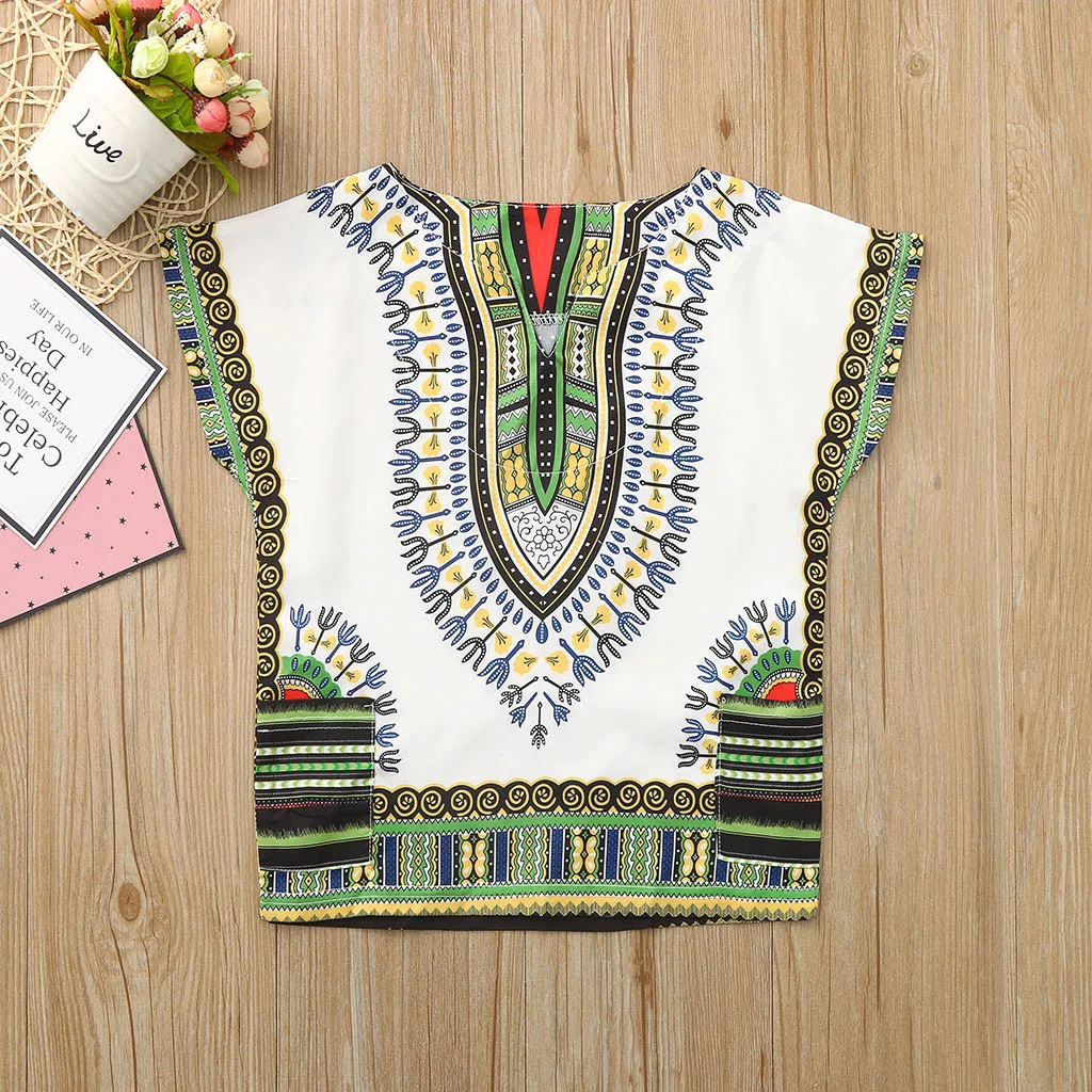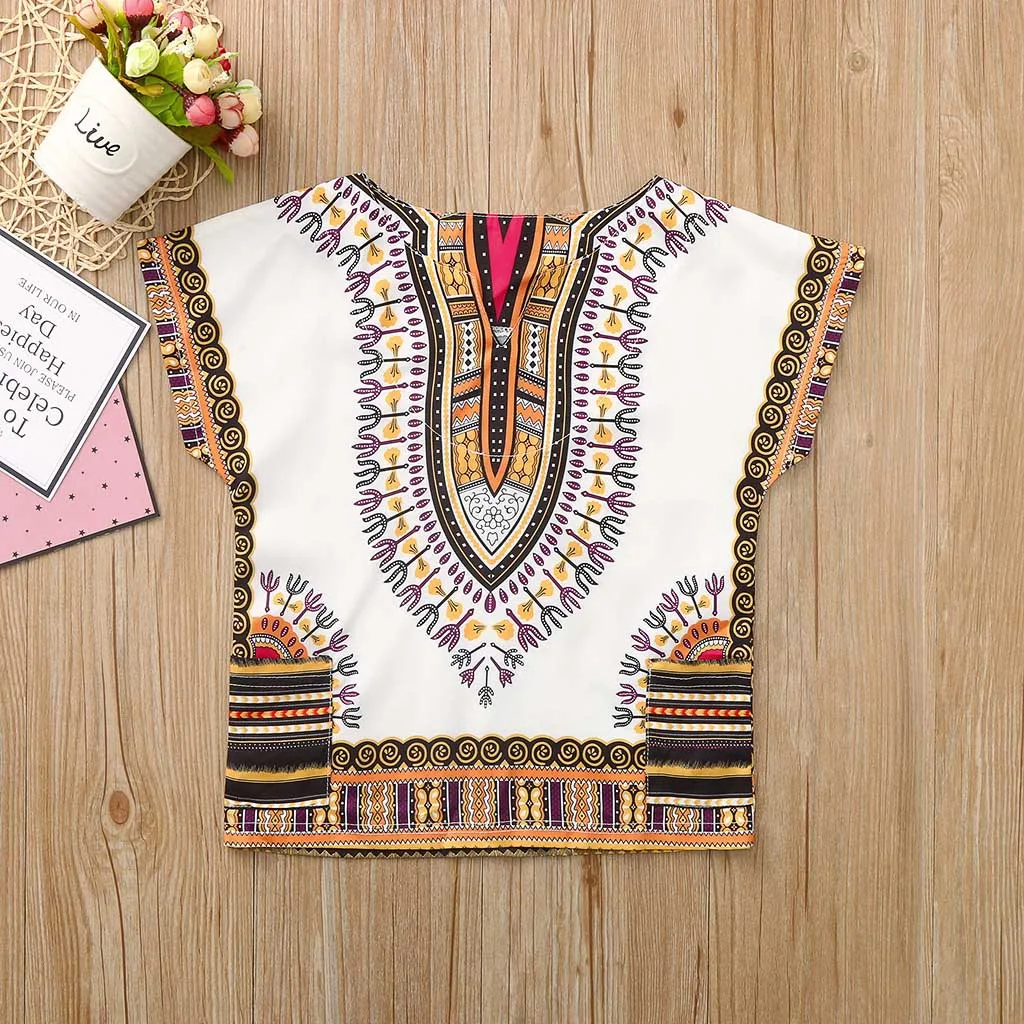 Модная детская одежда для девочек, хлопковая футболка унисекс с круглым вырезом и карманом в африканском стиле для мальчиков и девочек, топы H4