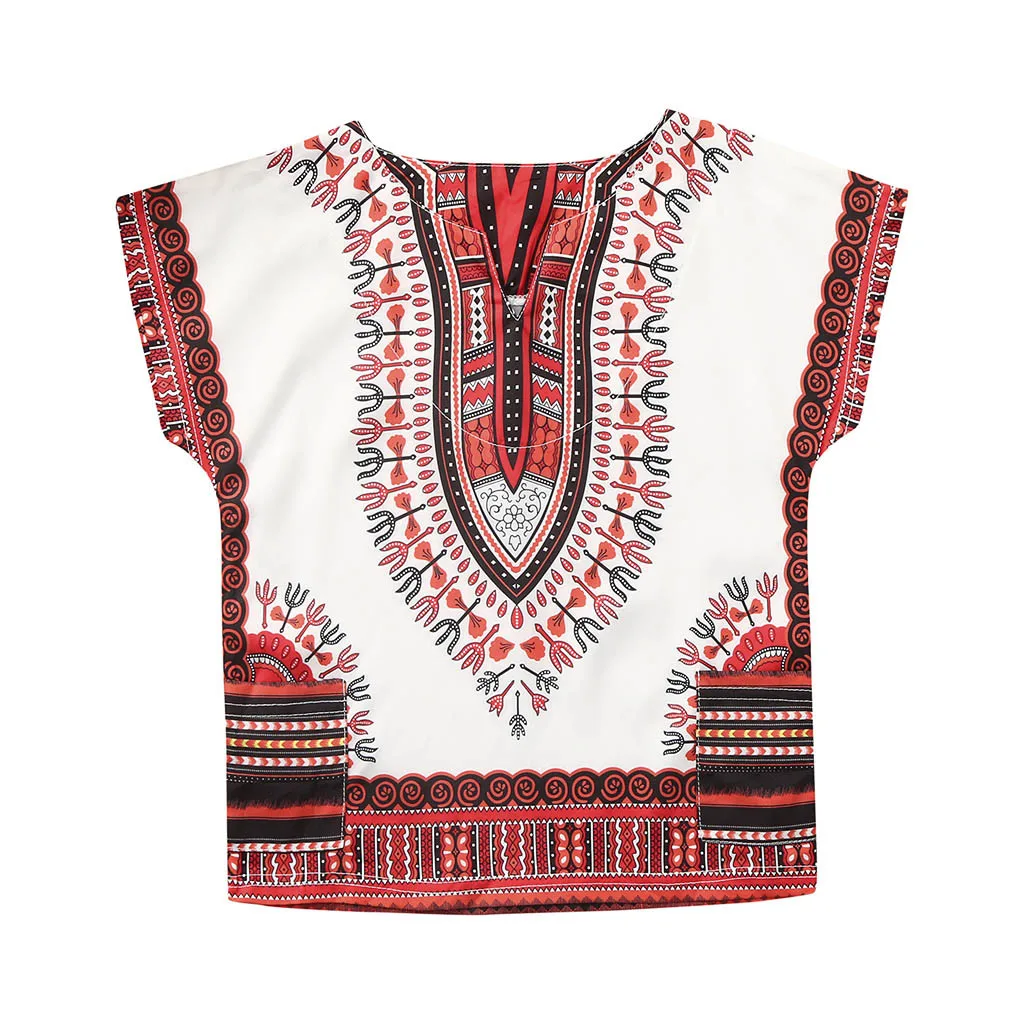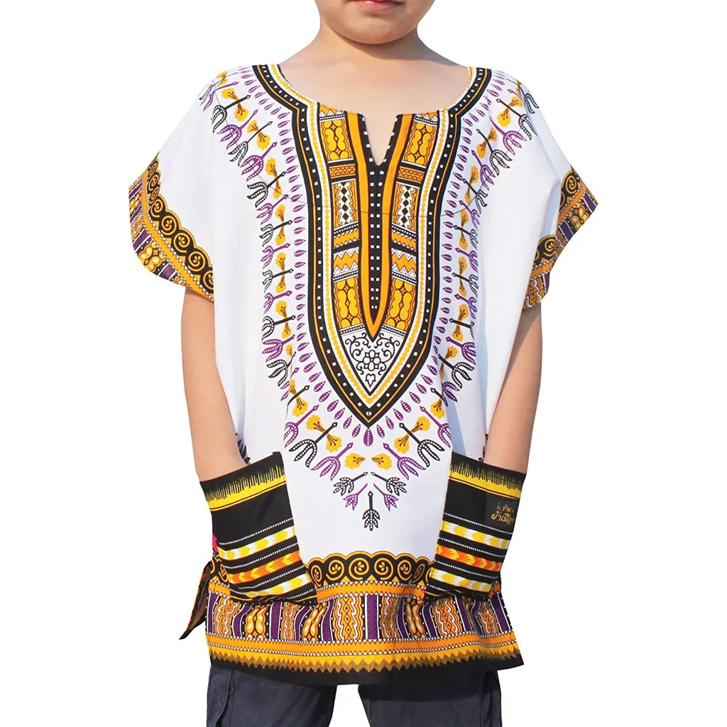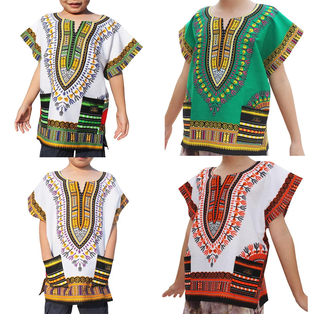 Модная детская одежда для девочек, хлопковая футболка унисекс с круглым вырезом и карманом в африканском стиле для мальчиков и девочек, топы H4