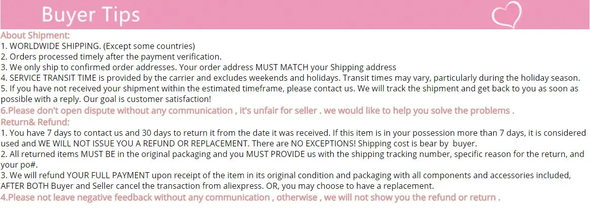 Для российских клиентов, вы должны дать нам ваше полное имя и подробный адрес, если нет, посылка будет отправлена обратно.