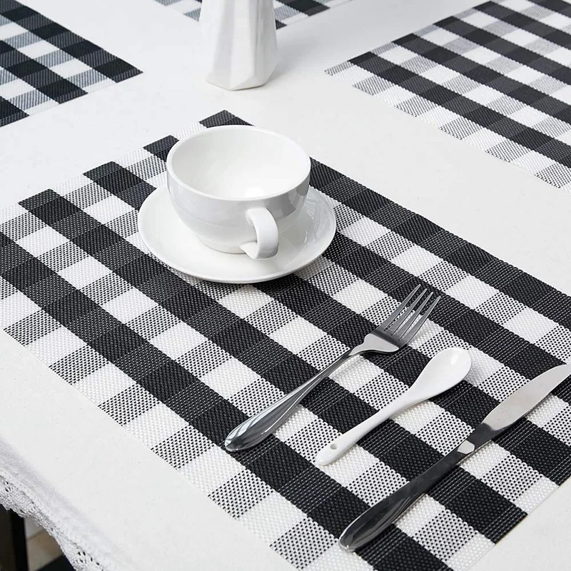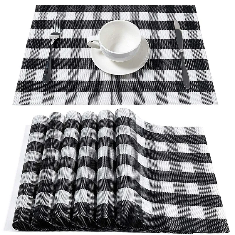 Черно-белые салфетки из ПВХ защищают ваш обеденный стол от пятен и царапин и служат украшением для обеденных столов и журнальных столиков. Стильный и изысканный, подходит для всех видов мебели и может быть помещен под чашки, столовые приборы, пепельницы и т. Д.