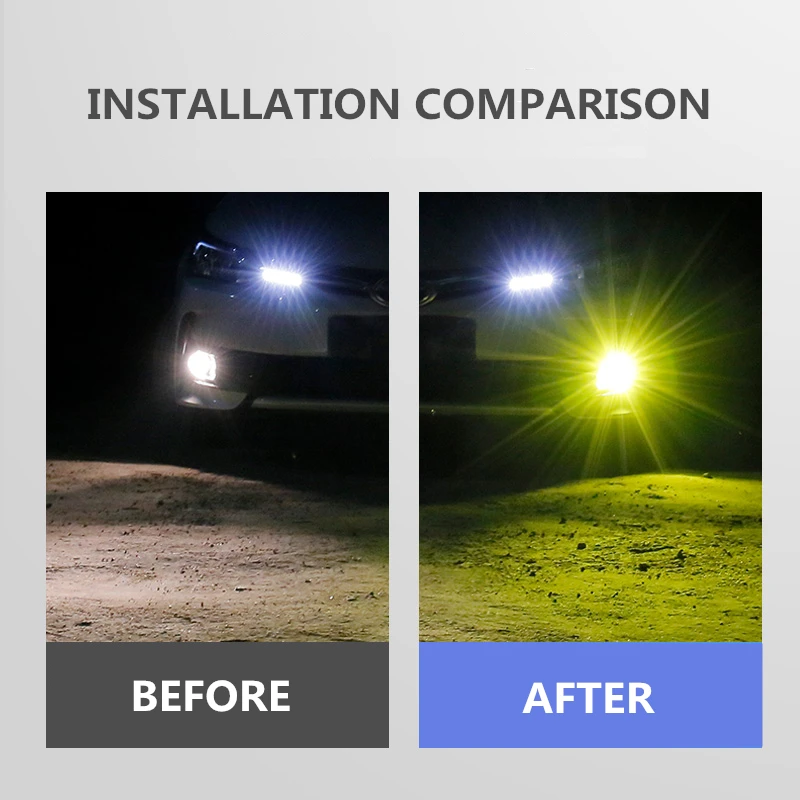 Светодиодный противотуманный светильник имеет два цвета: белый светильник 6000 k (по умолчанию), желтый Светильник 3000 k, если выключить и включить снова. Вы влюбитесь в 2 цвета в 1 светодиодный противотуманный светильник. Кроме того, это лучшая замена для вашего старого оригинального завода противотуманный светильник.