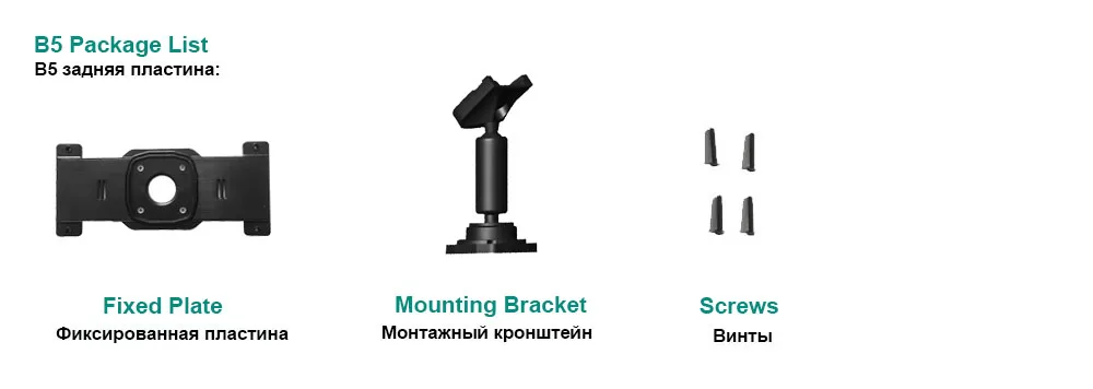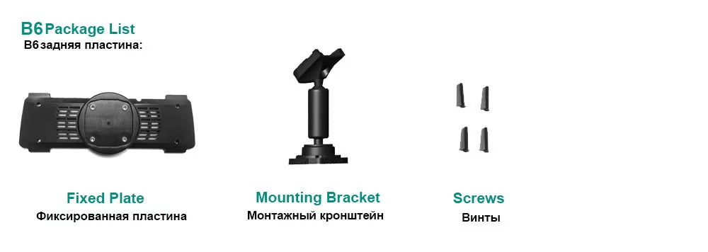 Для большинства 4,3 дюйма, 5 дюймов, 7 дюймов и всех зеркальных камер. (Нужны резинки) Когда под резиновой прокладкой нет винтов, вам нужно зафиксировать заднюю часть зажима на диктофон с резиновыми лентами, а затем зафиксировать кронштейн на пластине b с помощью винтов.