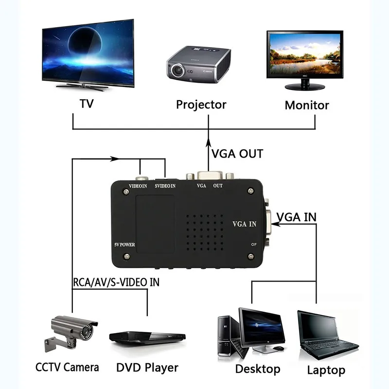 Потоковое видео с DVD, DVR, CC tv, STB или PC хоста... и т. Д., чтобы быть дисплеем на ПК/VGA монитор или телевизор/ЖК-дисплей