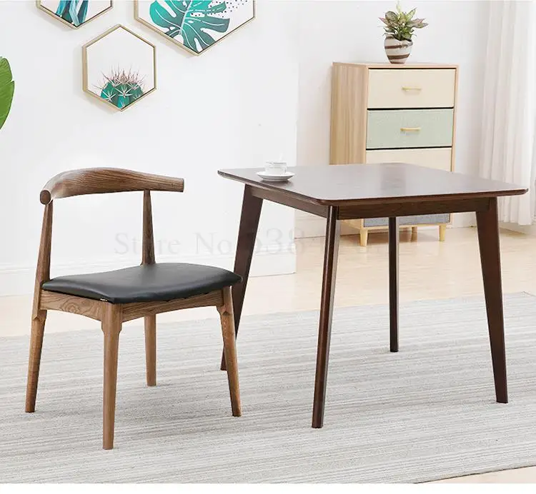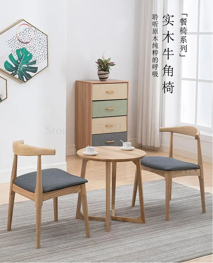 Модный скандинавский тканевый обеденный стул из цельной древесины кофейный