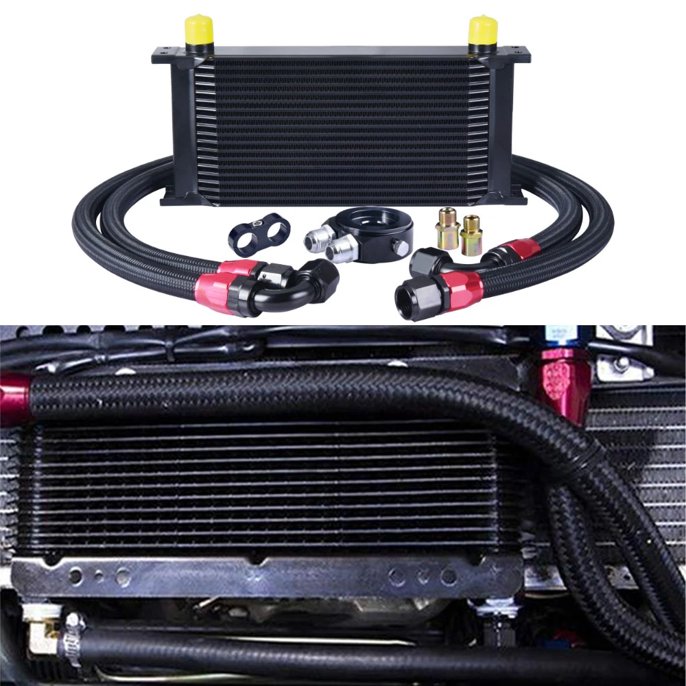 19 ряд 10AN Универсальный комплект масляного охладителя для трансмиссии двигателя + адаптер масляного фильтра + нейлоновая оплетка из нержавеющей стали комплект фитингов для масляных шлангов